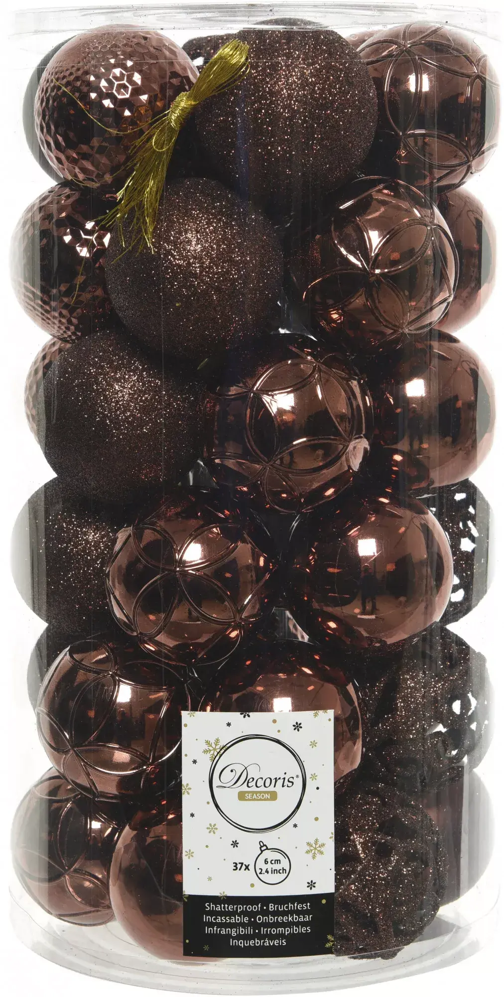 Ах, ну какой же это красивый комплект новогодних шаров «Королевский» от Kaemingk! Казалось бы, привычные шары, но в каком они представлены разнообразии – формы на любой вкус! Такими замечательными игрушками и вовсе можно ограничиться, больше не добавлять на елку ничего – они составляют уже готовый ансамбль, где каждый элемент идеально гармонирует друг с другом. В набор входят полированные, блестящие и фигурные шары, которые смотрятся особенно празднично и броско – да и название «Королевский» ему под стать. Необычные узоры приковывают внимание – елка поразит каждого гостя своим изяществом и вашим тонким вкусом. Выбирайте любой из представленных многочисленных цветов под оттенок вашего интерьера, елки, других игрушек – от такого дерева точно будет невозможно оторвать глаз!