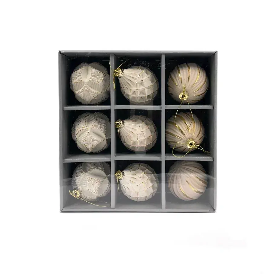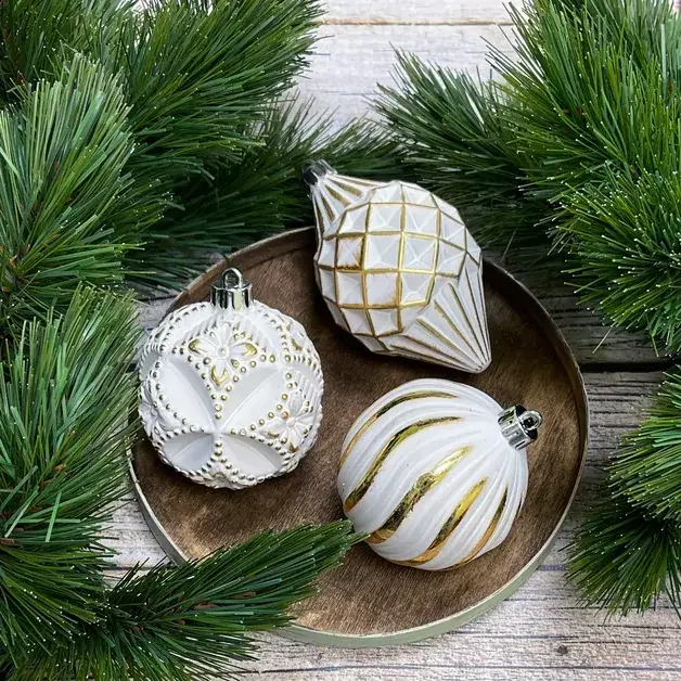 Шары «Рандеву» от Christmas De Luxe поражают блеском и великолепием. Увидев их однажды, вы поймёте: это любовь с первого взгляда и навсегда! Дизайн продуман до мельчайших деталей, и качество тоже на высоте. Елочные шары изготовлены из прочного пластика самого высокого качества, поэтому они будут радовать вас и ваших гостей еще не один новогодний праздник.