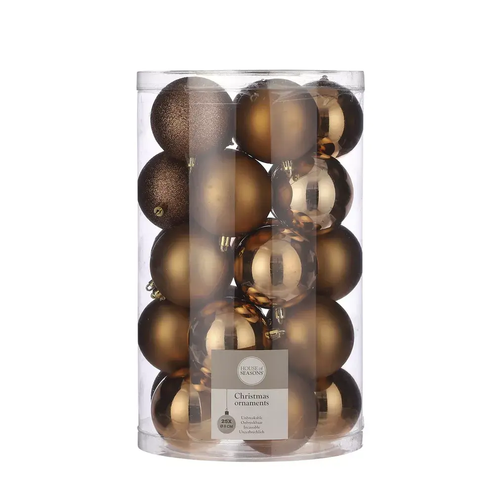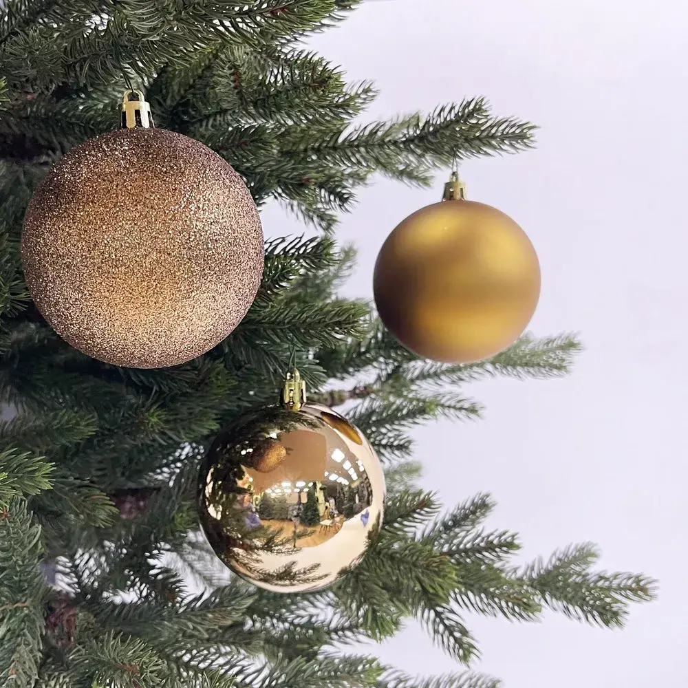 Россыпь блестящих и матовых шаров пронзительного синего цвета на белоснежной елке – зрелище невероятно привлекательное. А как вам такие же красавцы в изумрудном, нежно-розовом, багряно-красном, серебристом или бронзовом цвете, но на новогоднем деревце традиционного зеленого цвета? Смотрятся они не менее эффектно! Для того чтобы претворить в жизнь любую из вышеперечисленных идей, приобретите набор пластиковых елочных шаров «Рокси», вы не пожалеете! Глядя на эту красоту, невзгоды уходящего года моментально забудутся и захочется верить, что следующий год будет полон приятных событий. Шарики «Рокси» украсят елку любой величины, ведь в наборе 25 шаров!
