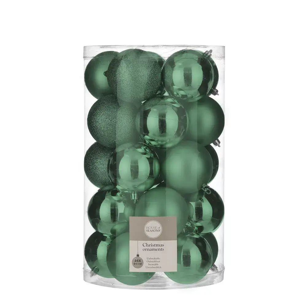 Россыпь блестящих и матовых шаров пронзительного изумрудного цвета на белоснежной елке – зрелище невероятно привлекательное. А как вам такие же красавцы в изумрудном, нежно-розовом, багряно-красном, серебристом или бронзовом цвете, но на новогоднем деревце традиционного зеленого цвета? Смотрятся они не менее эффектно! Для того чтобы претворить в жизнь любую из вышеперечисленных идей, приобретите набор пластиковых елочных шаров «Рокси», вы не пожалеете! Глядя на эту красоту, невзгоды уходящего года моментально забудутся и захочется верить, что следующий год будет полон приятных событий. Шарики «Рокси» украсят елку любой величины, ведь в наборе 25 шаров!