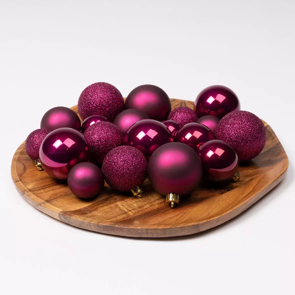 Довольно большой набор новогодних шаров «Стиль» от компании Kaemingk классно подойдет для вашей зеленой красавицы. 30 матовых, глянцевых и блестящих шаров (больших и малых) так и манят взять их в руки и повесить на ветки. Совсем немного времени – и перед вами не обычное хвойное дерево, а яркое лесное деревце, создающее в доме атмосферу настоящего праздника и чуда. И дело всего-то в нескольких красивых шарах, которые вы с любовью и радостью повесили на елку. Они и становятся тем «волшебным» компонентом Нового года – без украшения елки этого особого настроения не почувствовать. Kaemingk представляет шары в максимально насыщенных цветах, и у покупателя возникает лишь одна проблема – какой же комплект выбрать, ведь они все так прекрасно сочетаются с новогодним деревом и всей праздничной остановкой.