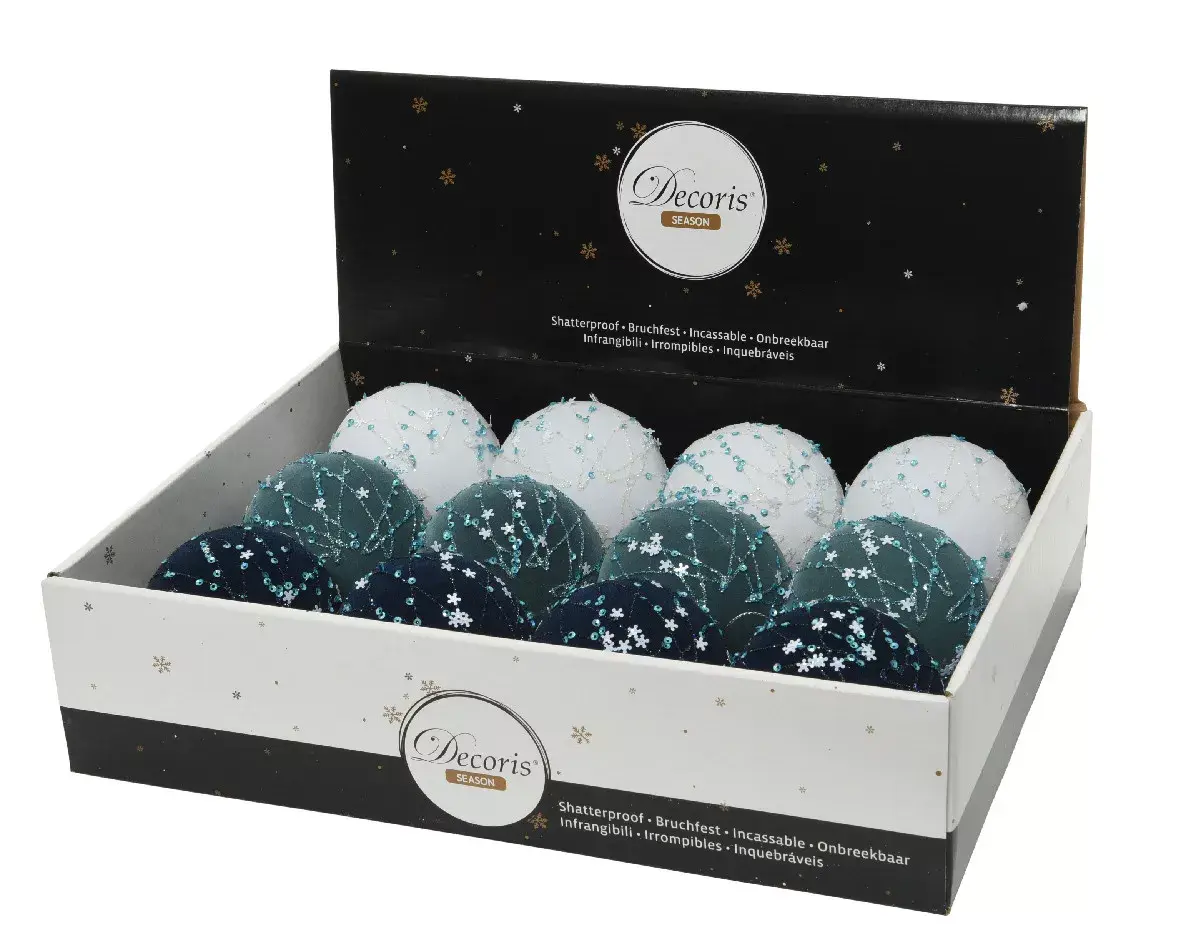 Какой нарядный набор новогодних шаров "Зимнее небо" от Kaemingk! Он точно станет главным украшением вашей зеленой лесной красавицы. Такие броские и яркие украшения отлично смотрятся на любых деревьях, не только натуральных, но и искусственных. По желанию вы можете комбинировать шары с другими украшениями (к примеру, белыми шишками Kaemingk) или оформить елку в «круглой» тематике – благо выбор шаров огромный. В комплект входят шары 3-х очень приятных глазу оттенков неба и грозы. Глубина цвета подчеркивается белыми игрушками – контраст отличный и продуманный. Тонкий деликатный декор в виде пайеток и нитей люрекса придает шарам должный шарм и блеск.