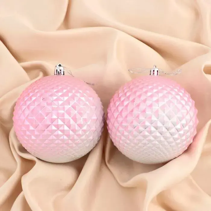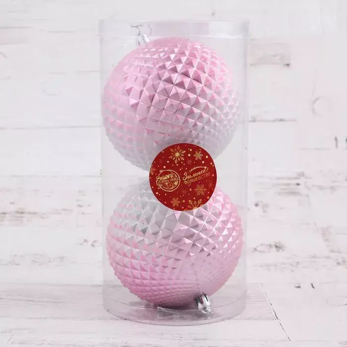 Любителям пастельных оттенков придется по душе набор шаров «Рельеф». Нежно-розовые шары с объемным узором и лёгким градиентом выглядят оригинально. А благодаря высокому качеству пластика нового поколения они будут украшать вашу ёлку и радовать еще много лет!