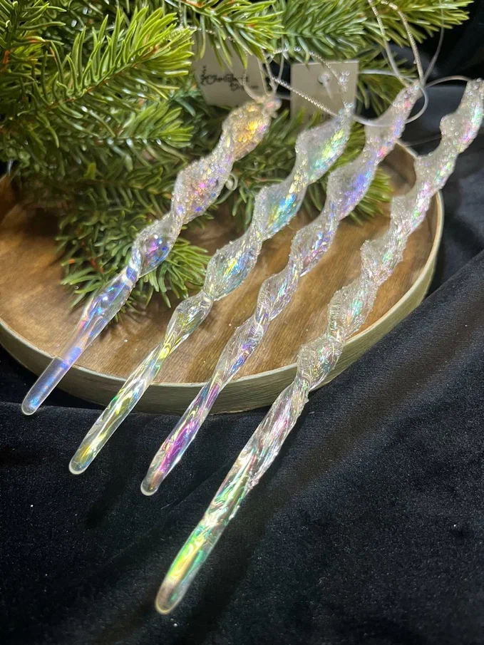 Размеры и форма сосулек специально разработаны для того, чтобы гармонично вписываться в общий декор елки, при этом оставаясь заметными и привлекающими внимание. Специальное крепление позволяет легко и надежно разместить украшение в любом месте.