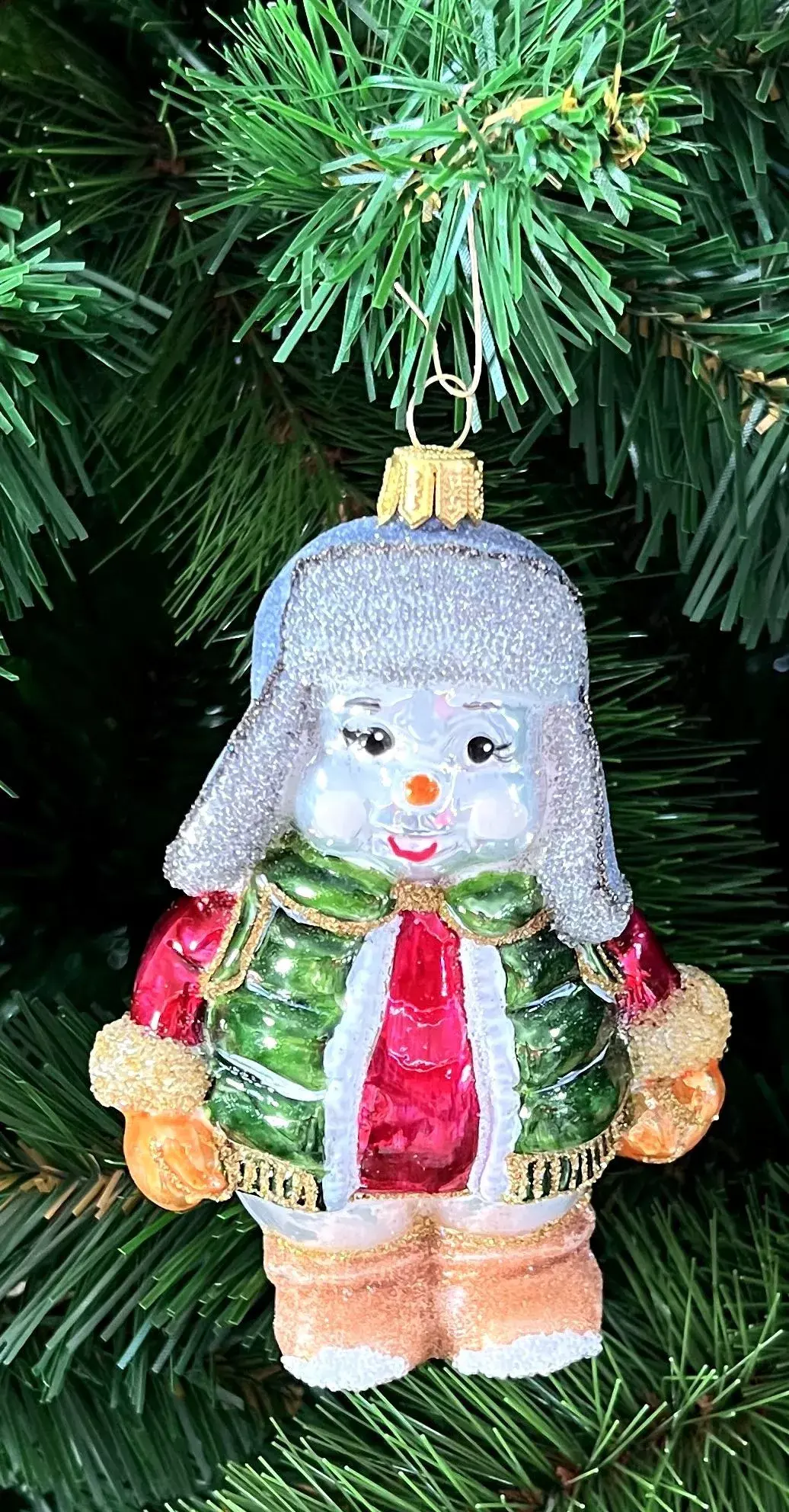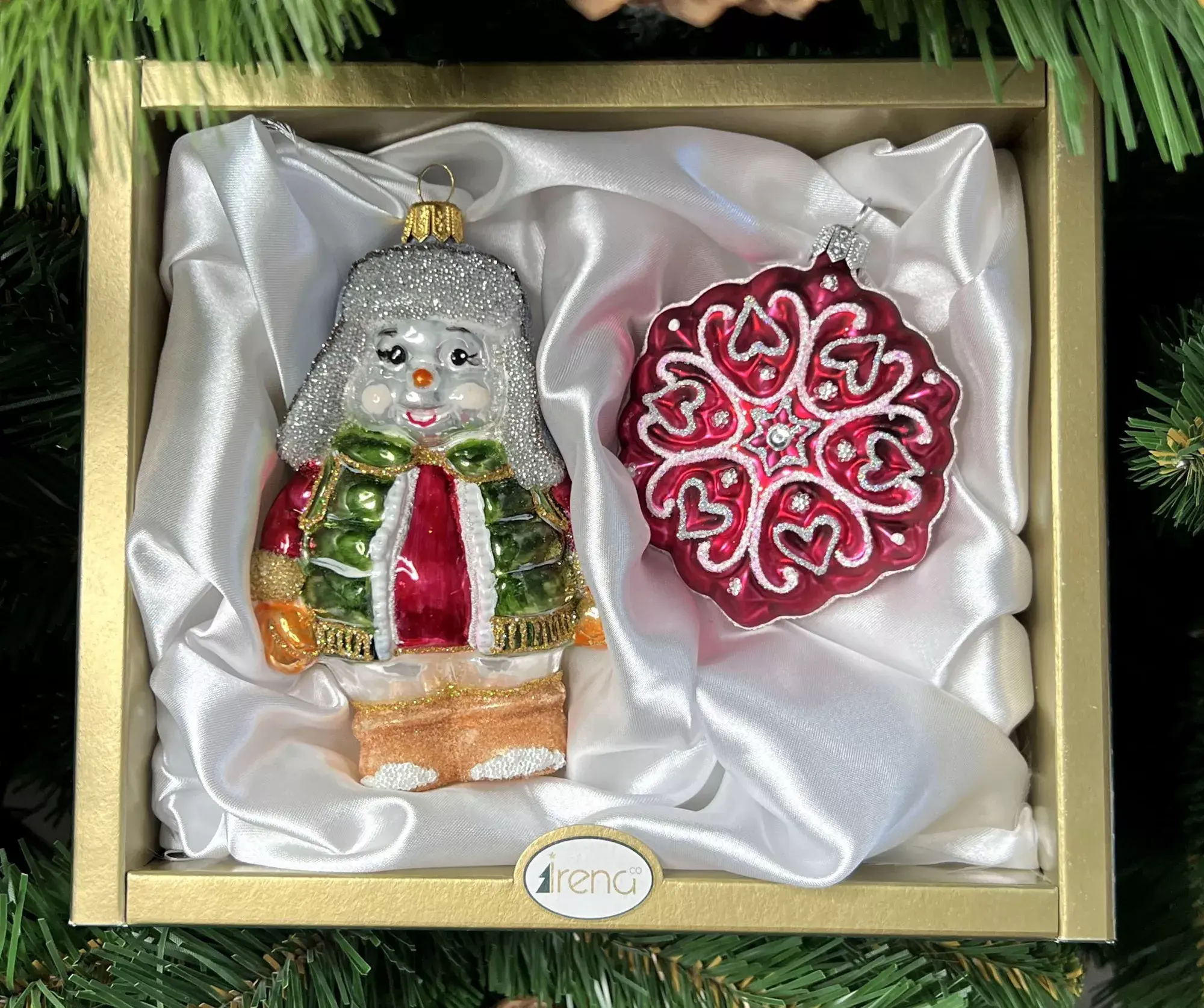 Снеговик, наряженный в пуховик и шапку-ушанку, выглядит оригинально, и получить такой презент на Новый год очень приятно. Но это еще не все. К снеговику прилагается снежинка красного цвета. Этот набор от фирмы Irena придется по душе любителям оригинальных решений. Глядя на модного снеговика и ажурную красавицу-снежинку, невозможно не улыбнуться.