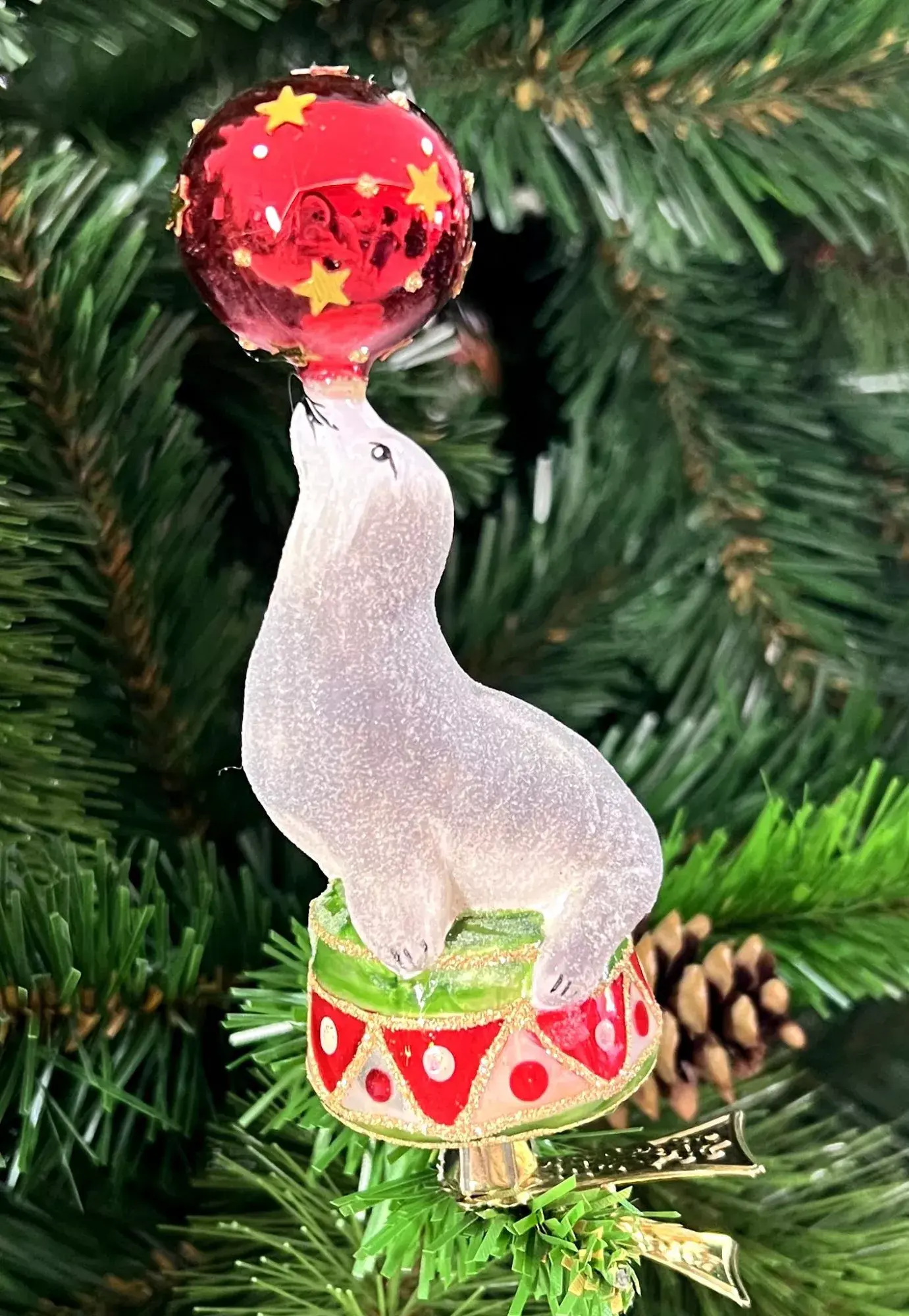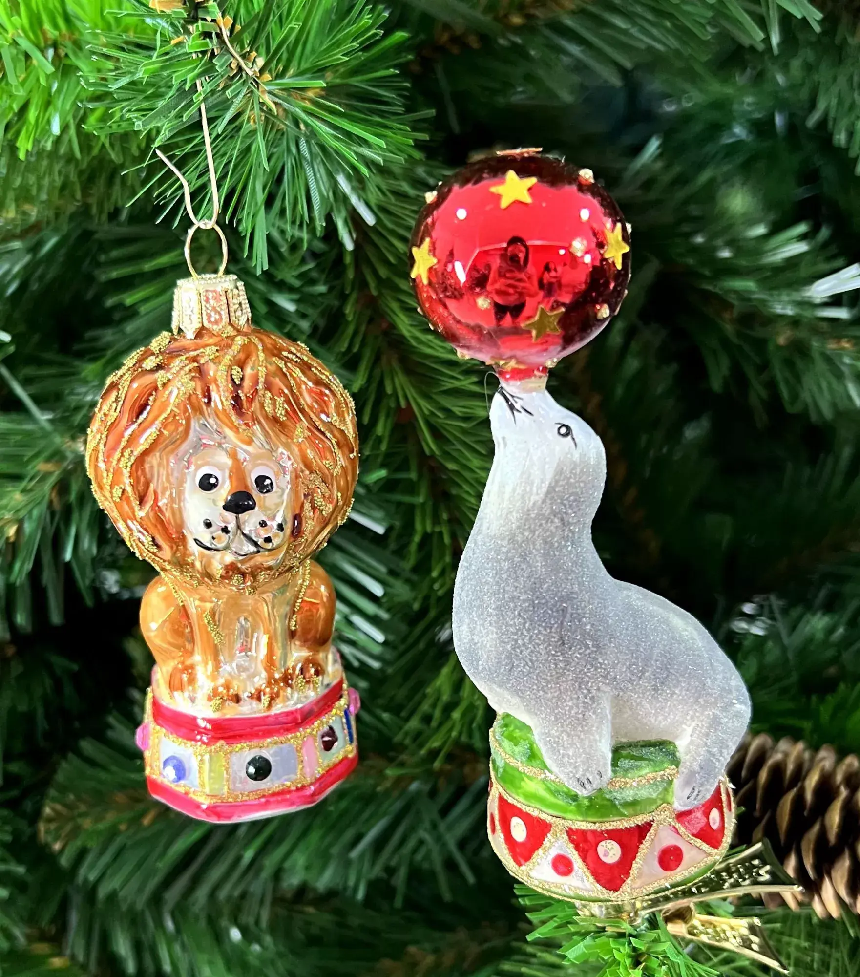 Эти милые представители фауны, важно восседающие на тумбе, вызовут улыбку, даже если настроение неважное. Лев, как и подобает Царю зверей, выглядит импозантно и благородно, а тюлень с мячиком такой милый, что на него хочется смотреть, не отрываясь. Особенно они придутся по душе детям. Формовые игрушки на прищепке от бренда Irena украсят новогоднюю елку любого цвета.