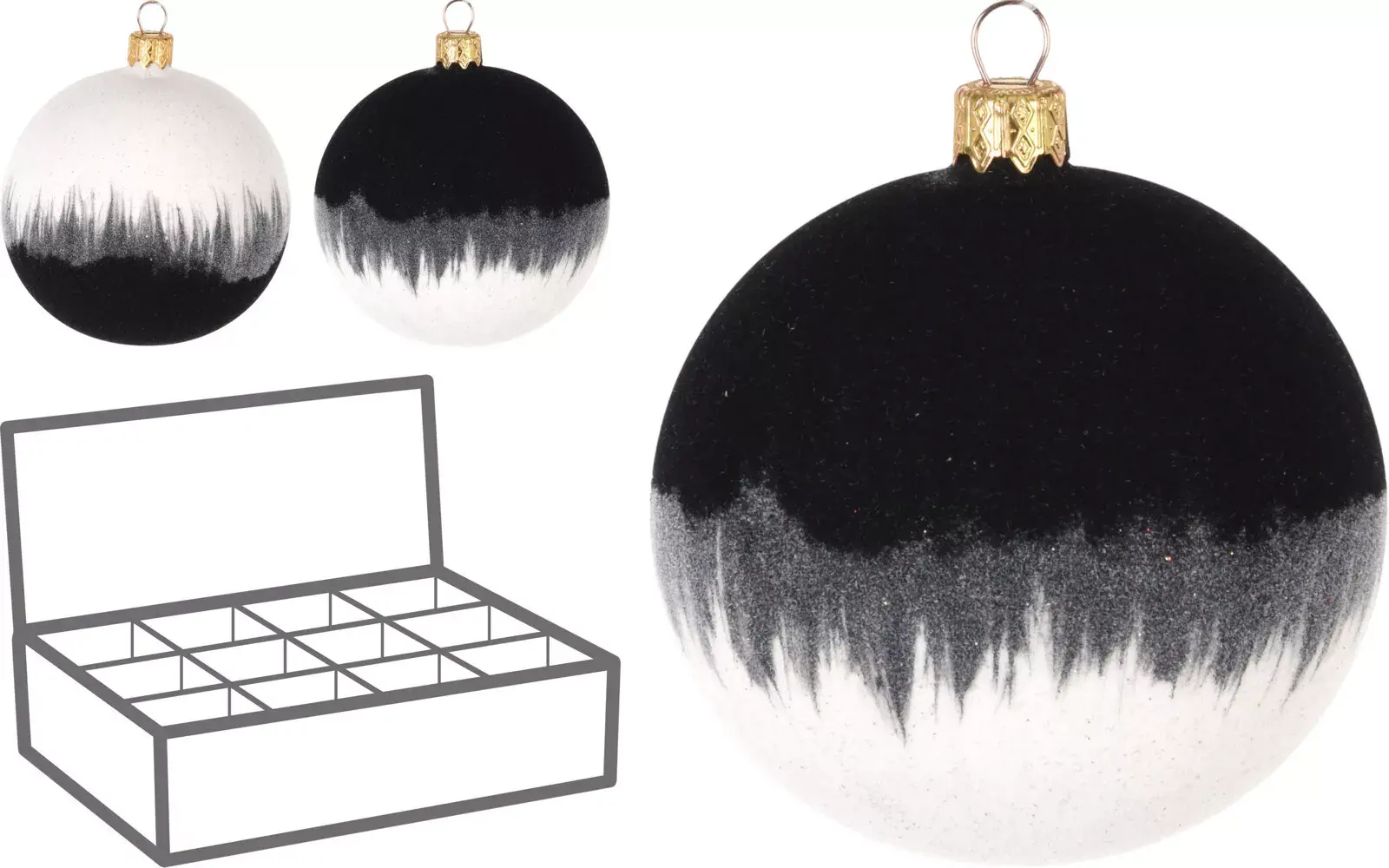 Монохромная цветовая гамма – один из последних трендов в оформлении ёлочных шаров. И если вы не хотите отстать от моды, обратите внимание на наборы ёлочных шаров «Агат» от Koopman. Гости обязательно оценят вашу осведомленность в отношении свежих трендов и отличный вкус. Контраст густого чёрного цвета и совершенной белизны, разбавленной в середине довольно интересным серо-фиолетовым цветом, выглядит потрясающе! В нашем каталоге представлены две разновидности шаров «Агат», которые отличаются лишь по размеру.