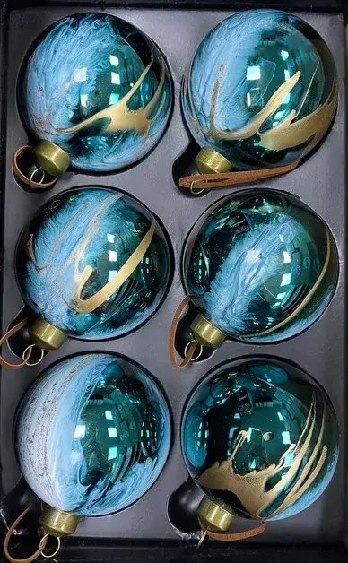 Набор стеклянных шаров Акварель бирюза 80 мм., 6 шт., Christmas DeLuxe (87201) – купить за 1 600 ₽ | Мир Ёлок — ваш лучший выбор для создания волшебной атмосферы на Новый год!