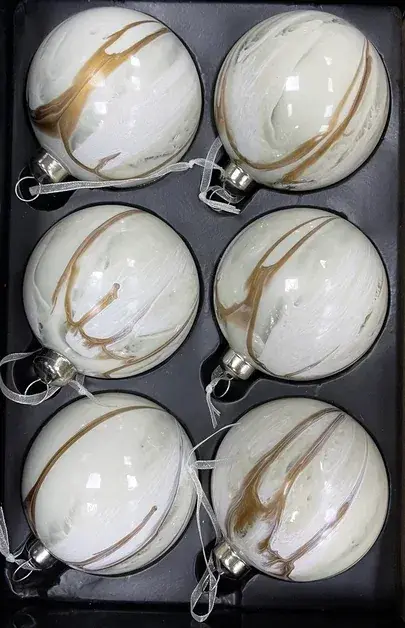 Шары Акварель отлично дополнят игрушки набора компаньона арт. 87204 - олива, луковица. Разнообразие форм придает наряду елочки особый шарм.