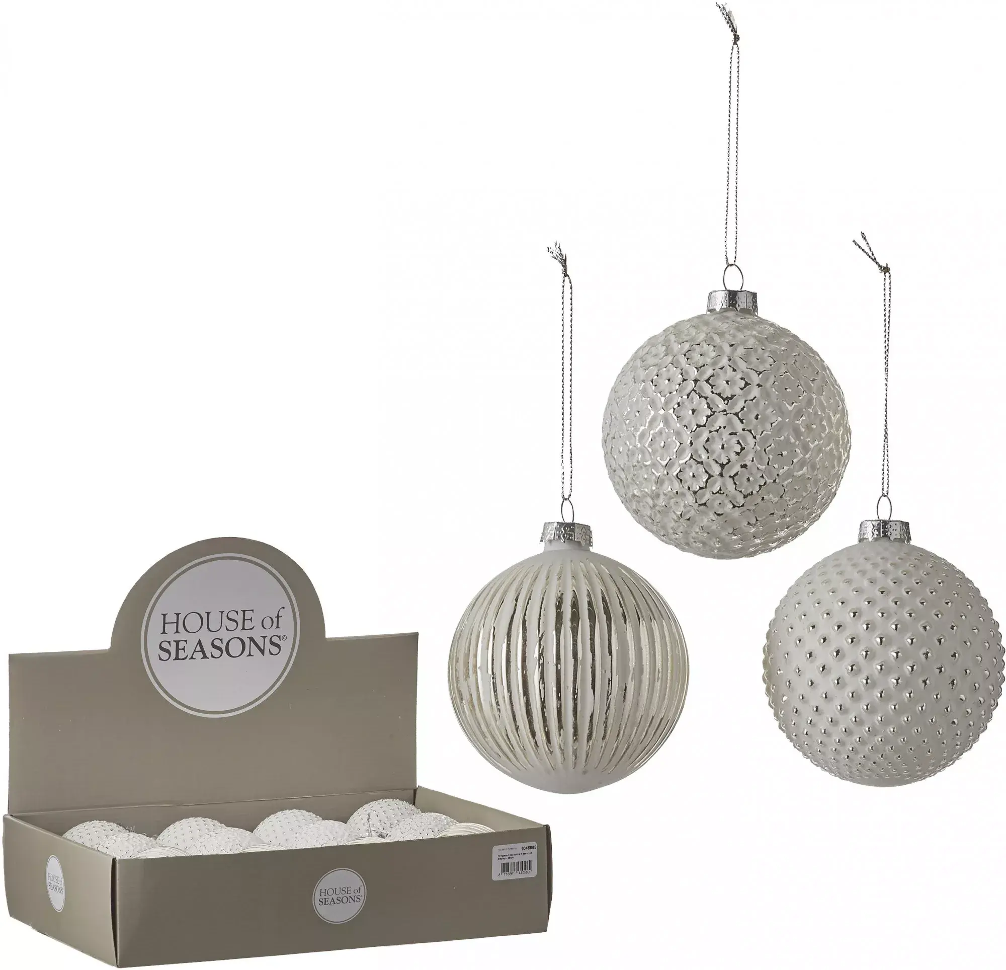Новогодние шары – это незаменимый символ зимних праздников. Набор из 12 белых матовых шаров с серебристыми потертостями будет смотреться очень эффектно, и придаст свежести и зимнего очарования образу зеленой красавицы. Каждое украшение снабжено специальной петелькой, с помощью которой его можно повесить на елку или в любом понравившемся месте. Такой набор станет превосходным украшением для Вашей елочки или великолепным подарком для близких или друзей.