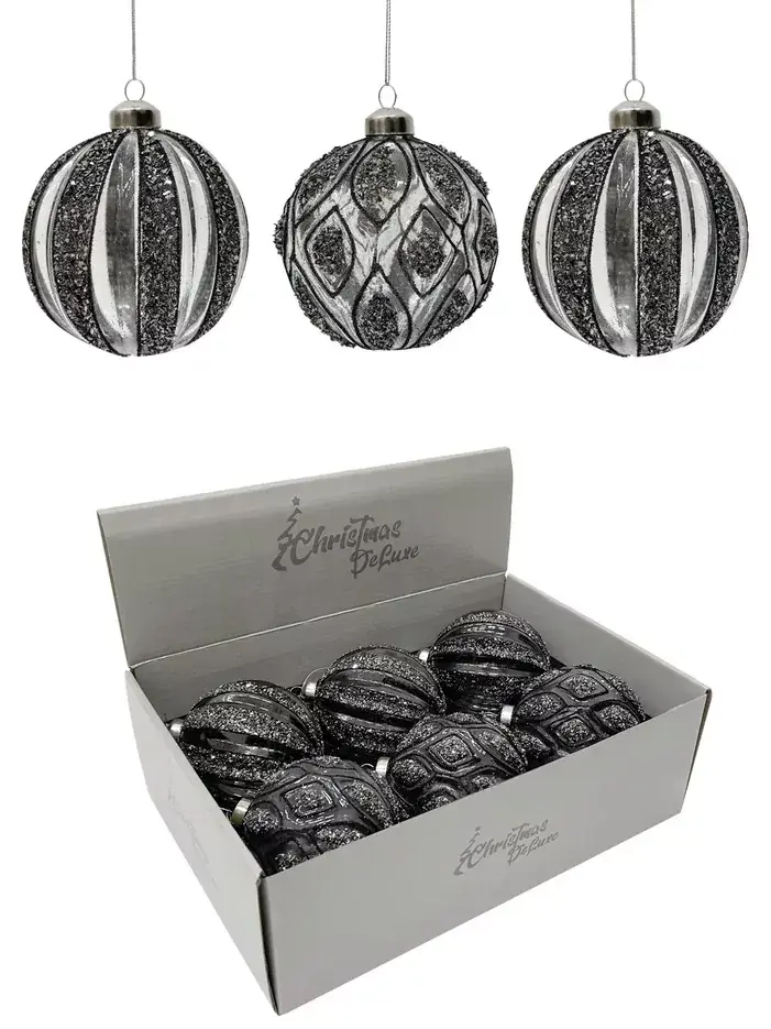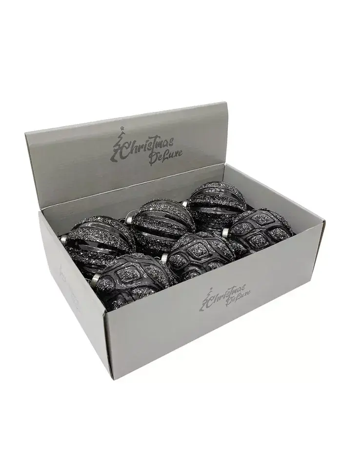 Стеклянные шары комплекта «Чародейка» кажутся отлитыми из чистейших вод Байкала. Талантливые умельцы Christmas DeLuxe сочетали в данной модели рифленую, матовую и глянцевую фактуру, отчего стекло под светом гирлянд переливается всеми цветами радуги. Глядя на елку, можно представить, что это сама Матушка-Зима повесила на нее огромные искрящиеся бриллианты, которым нет цены!