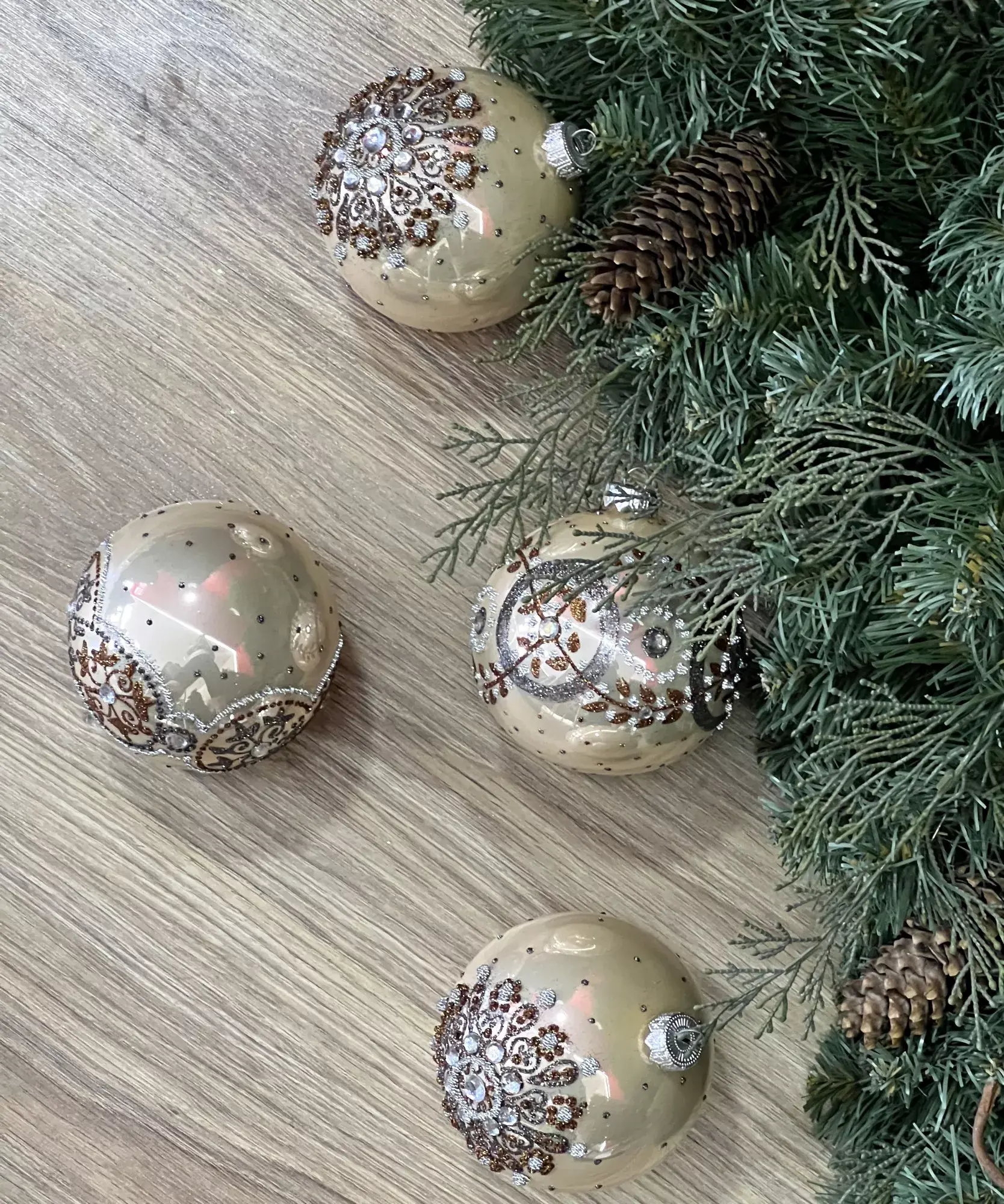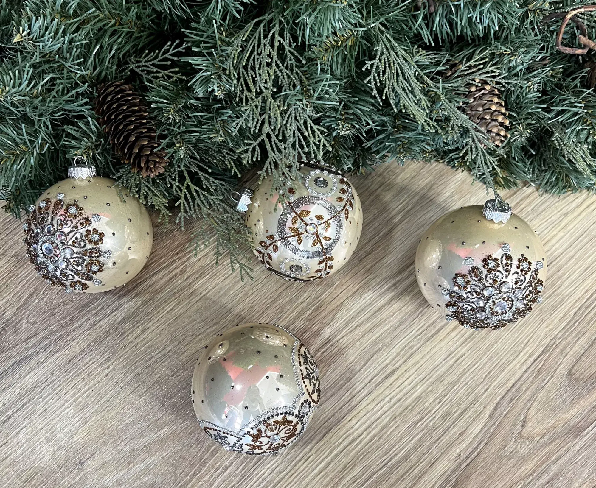 Набор шаров Irena «Драгоценная роспись» – великолепная идея для украшения новогодней елочки белого цвета. Двухцветные шары, украшенные оригинальным сложным орнаментом черного цвета, выполнены в сдержанной цветовой гамме. Тем не менее изделия выглядят неожиданно броско и очень эффектно.