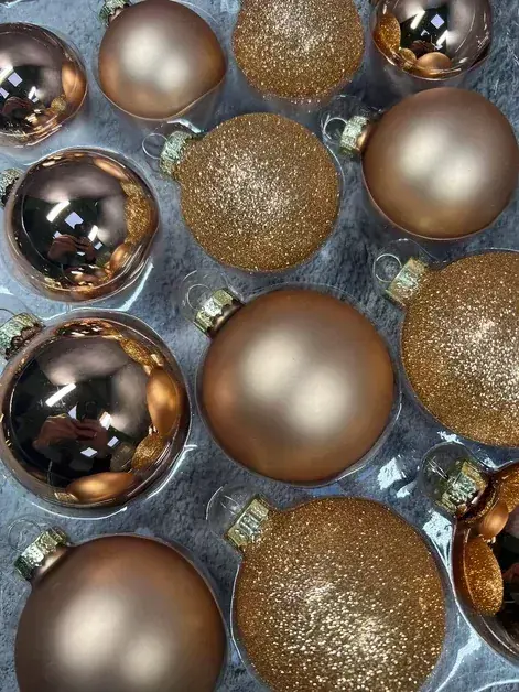 Устройте себе сладкую жизнь по полной программе! Приобретайте набор из 42 стеклянных шаров «Карамельный» от фирмы Christmas De Luxe, и жизнь покажется вам интереснее! Шары выглядят очень эффектно. Кроме того, карамельный цвет сегодня в тренде.