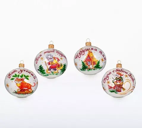 Яркие краски на белоснежном фоне выглядят особенно выразительно и привлекают внимание. Поэтому, неудивительно, что шары из набора «Лукоморье» со сказочными мотивами сразу бросаются в глаза, призывая вас стать их счастливым обладателем. В композиции преобладают теплые оттенки, которые преобразят колючую королеву новогодней ночи и сделают обстановку доброжелательнее.
