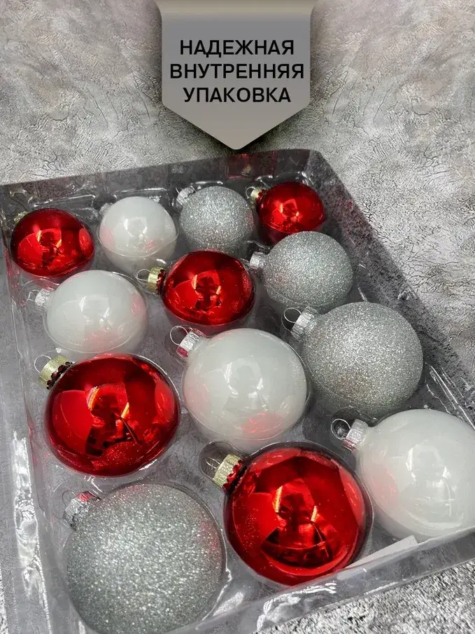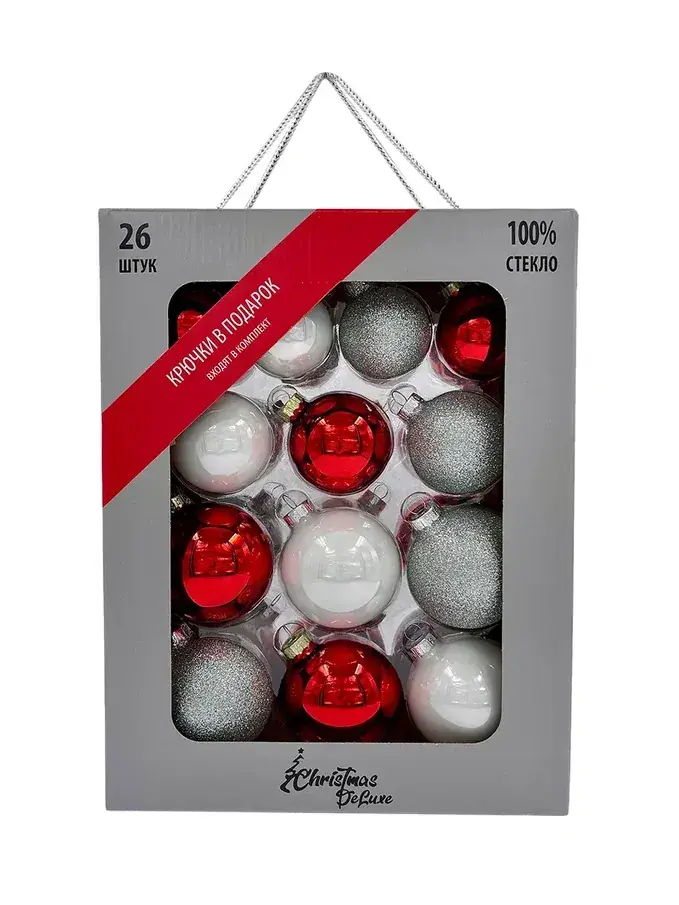 Как хороши яркие красные гроздья рябины, покрытые первым снежком! Именно этот образ вдохновил художников Christmas DeLuxe на создание превосходного набора стеклянных новогодних игрушек. Красный цвет – праздничный и нарядный, белый – чистый и свежий, а серебристый – как рой снежинок, медленно спускающихся с неба и ложащихся на рябиновые гроздья.