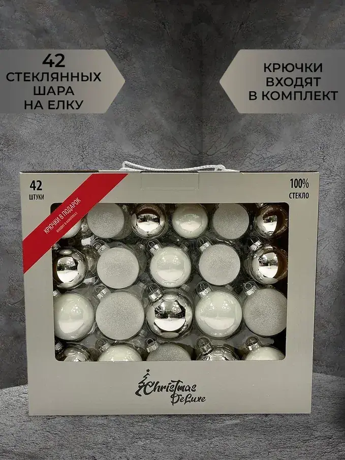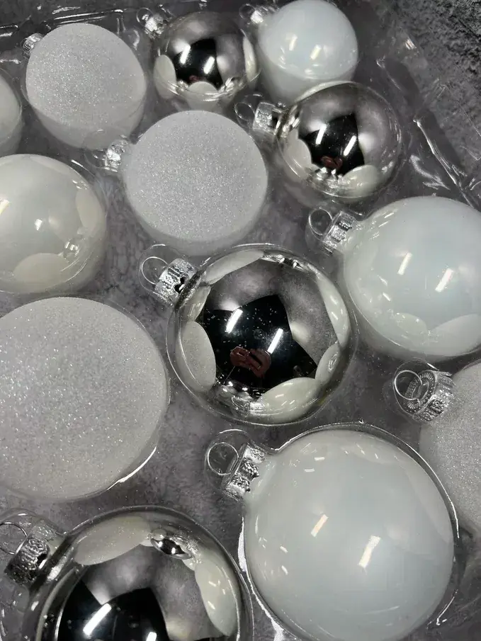 Белый цвет ассоциируется с чистотой, невинностью и первым снегом. А еще он наводит на мысли о веселом и красивом празднике. Совершенная белизна 42 стеклянных шаров «Первый снег» настраивает на поэтический лад и помогает верить только в лучшее.