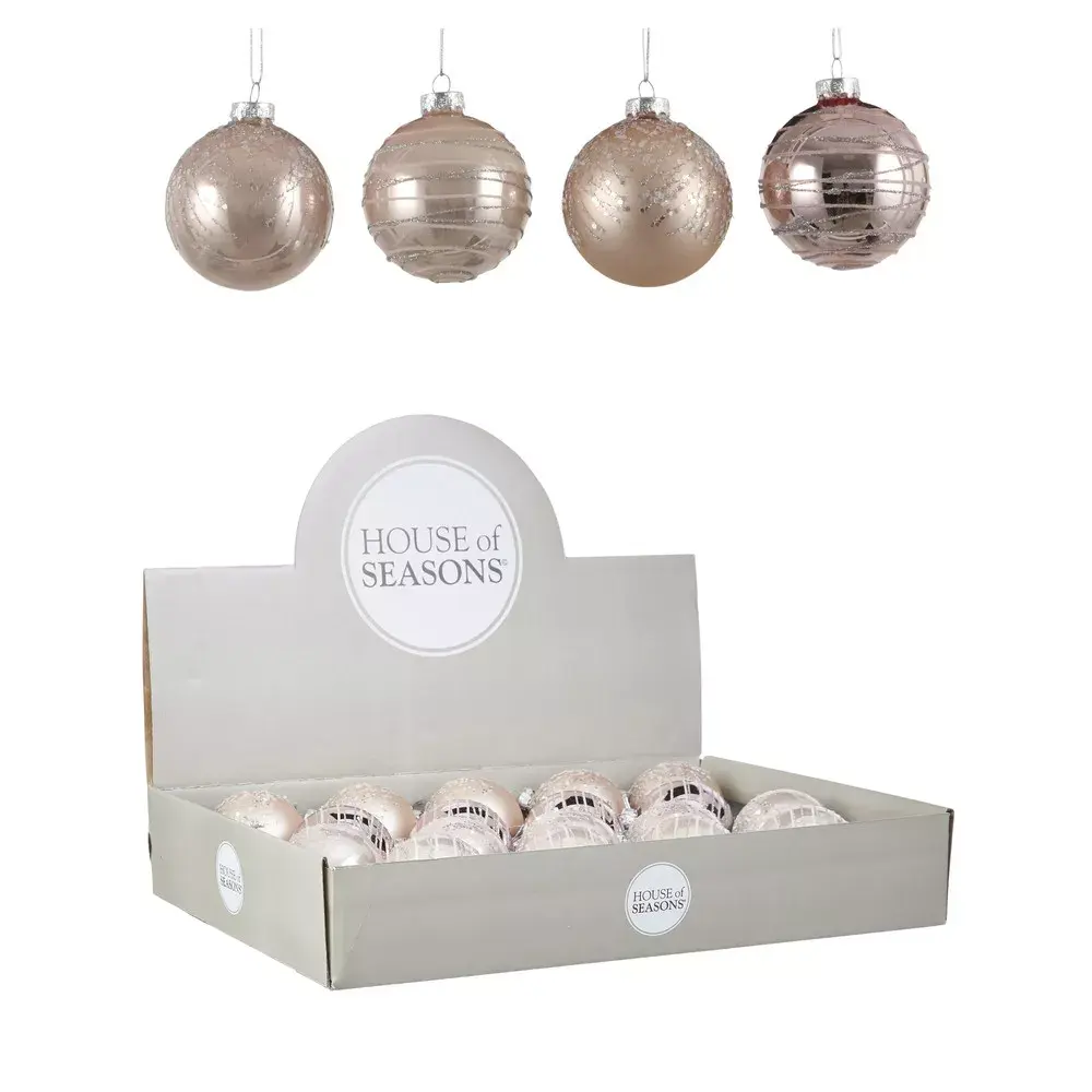 У природы нет плохой погоды, а это означает, что и вьюга может быть прекрасна. Особенно, если речь идет о елочных шарах серебристо-белого цвета «Вьюга» или серебристо-голубоватых шарах «Новогодняя поземка». Благородные холодные оттенки поражают воображение. Но если вам по душе теплые цвета, то стоит обратить внимание на роскошный набор «Золотая россыпь» или на шары «Розовый пунш» нежного оттенка с изящным декором – олицетворение красоты и чистоты. А нереально красивые ярко-красные шары со священным названием «Грааль» заставят вас забыть о дурных помыслах и поверить в простое человеческое счастье.