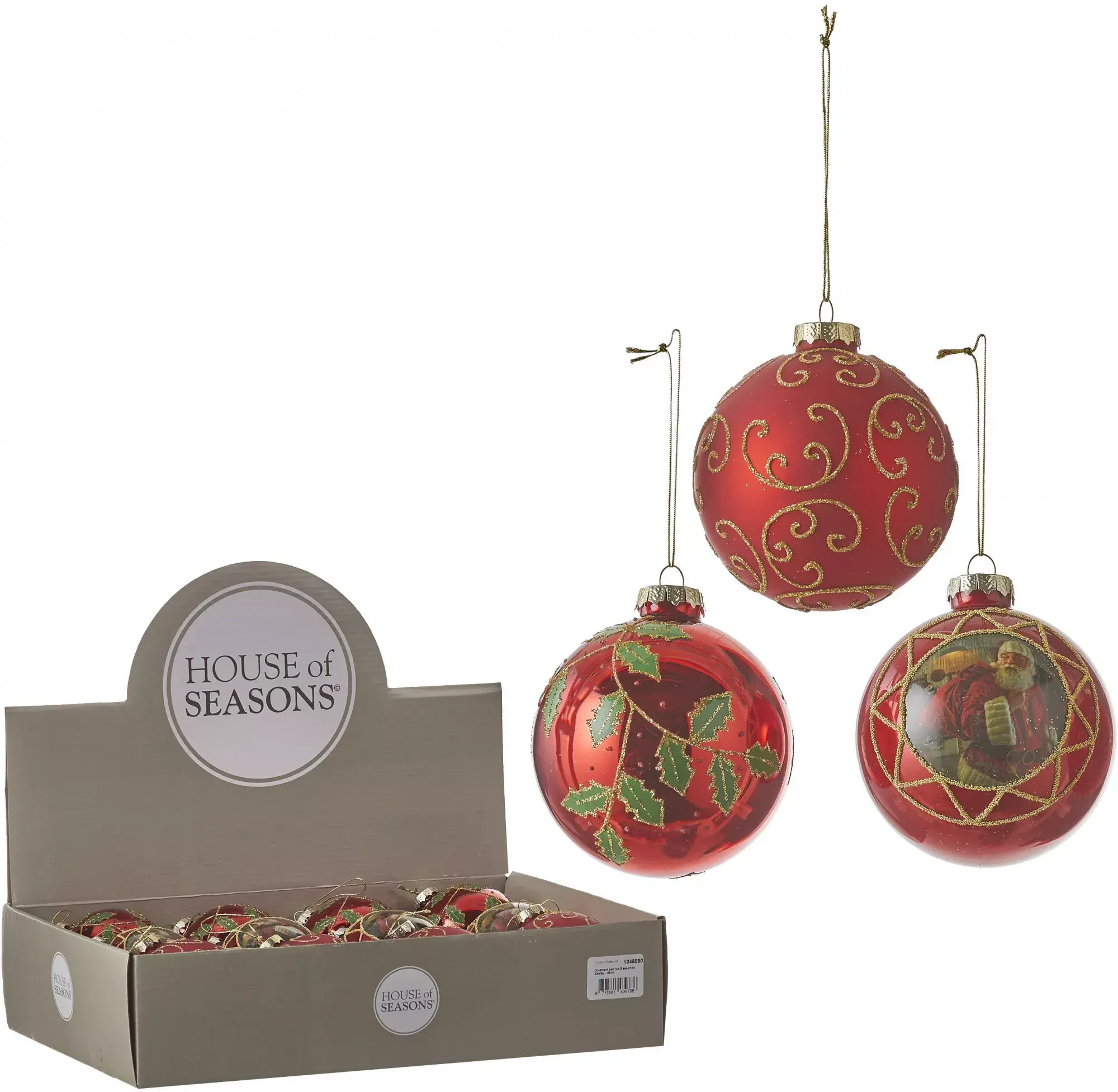 В канун Нового года так приятно украшать дом и наряжать ёлку всей семьёй. Наполните праздник яркими красками! Набор шаров «Страсть» - украшения, которые сделают интерьер торжественным и оригинальным. В набор входят 12 стеклянных шаров трех видов: матовый красный шар с узором золотого цвета, глянцевый красный шарик с зелеными лепесточками и золотой окантовкой и красный глянцевый шар с изображением главного героя праздника – Дедушки Мороза. Каждое украшение снабжено специальной петелькой, с помощью которой его можно повесить на елку или в любом понравившемся месте. Такой набор станет превосходным украшением для Вашей елочки или великолепным подарком для близких или друзей.