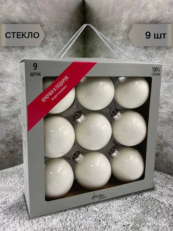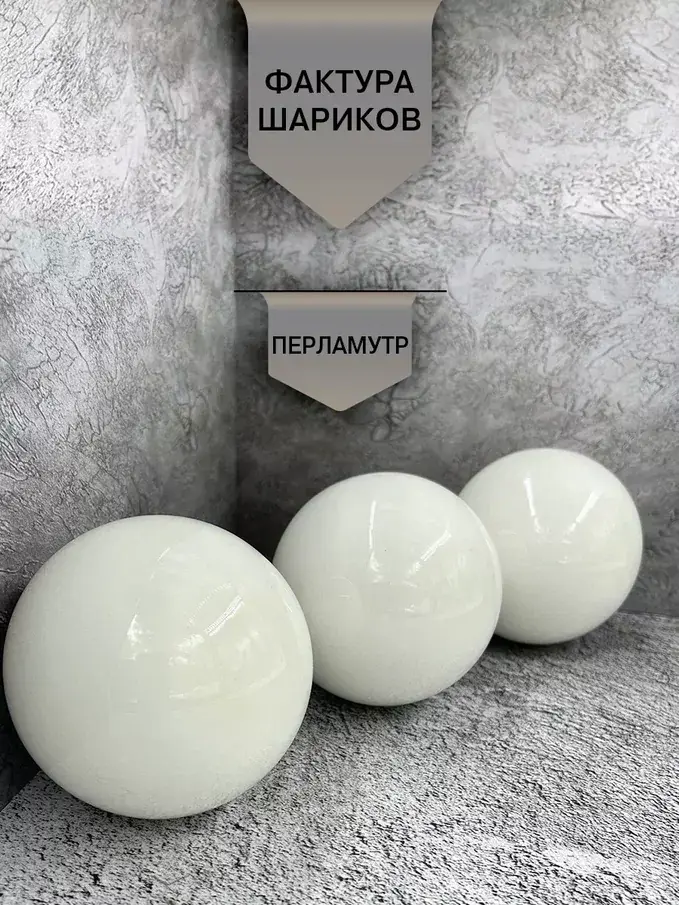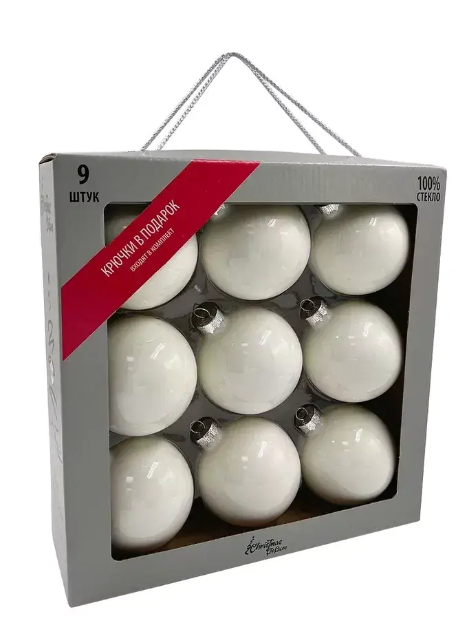 Классический белый цвет ассоциируется с зимой и свежестью снега. Перламутровое покрытие придаёт шарам особый блеск и глубину. Стеклянна поверхность создаёт эффект прозрачности и лёгкости.