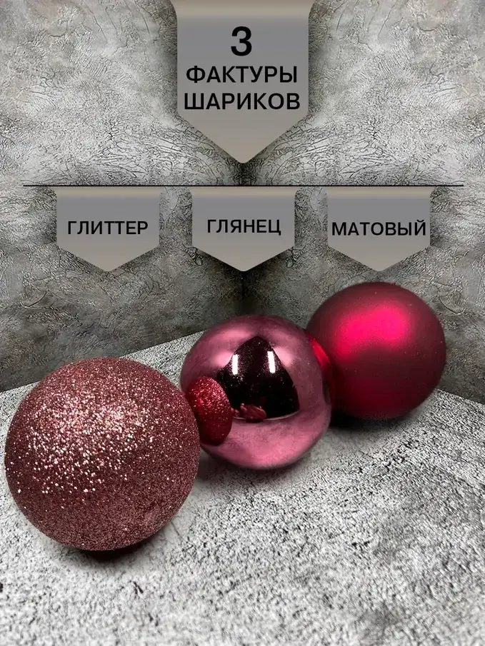 Игра на разнице текстур, вкрапления серебра, золота и сверкающих деталей всегда действует безотказно. Шары классического красного, элегантного лилового цвета и сочного ягодного смузи сделают праздник ярким, а шары цвета розового шампанского и «розовая дымка» придадут ему романтические нотки. Наборы «Серебряный микс» и «Первый снег» – олицетворение зимы, а «Шоколадное суфле» и «Брызги шампанского» станут символами веселого и вкусного праздника. Благодаря разнице цветов и фактур этих потрясающих шаров вы легко придадите елочке новое звучание.
