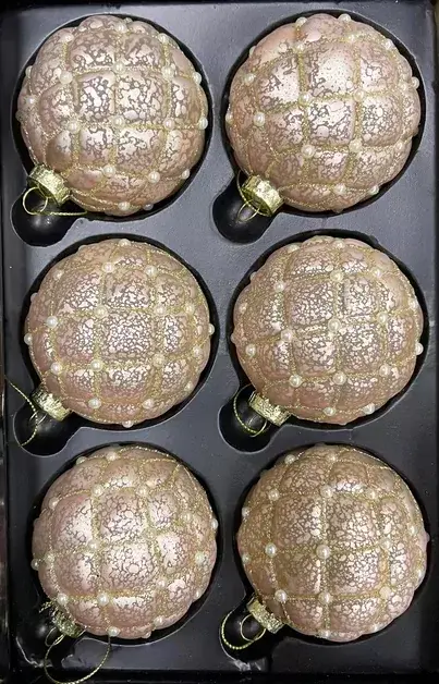 Вы любите зефир? Тогда у фирмы Christmas De Luxe для вас шикарный подарок – целое зефирное царство! Заманчиво? Еще бы! Ведь Новый год – это, прежде всего много-много разных вкусняшек. Стеклянные шары пастельного розового цвета напоминают невероятно аппетитный ягодный зефир. А милые бусинки и золотая патина придают им изюминку. Мы обещаем вам веселый, жизнерадостный и, конечно же, вкусный праздник!
