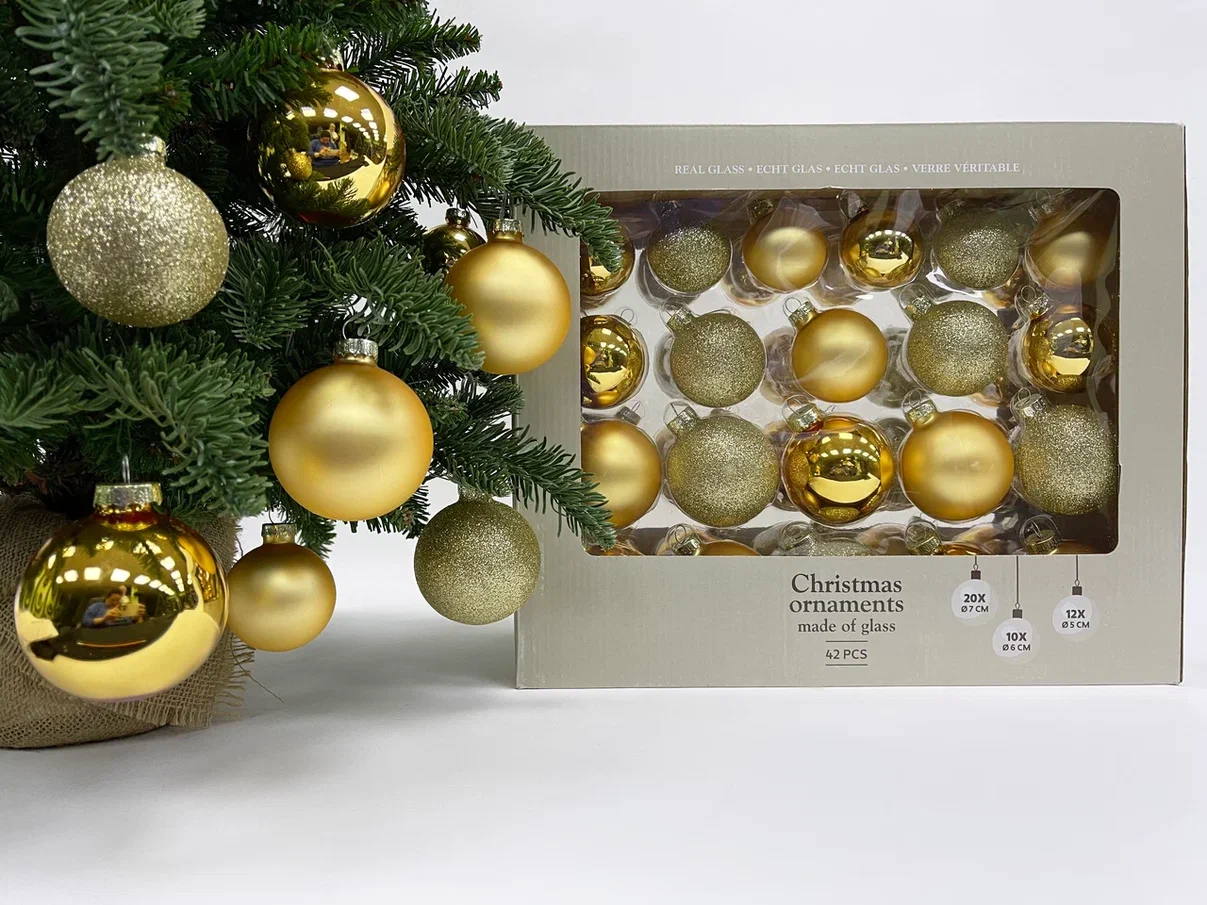 Золото всегда считалось олицетворением достатка. К тому же, золотой цвет – один из самых трендовых. Приобретайте набор стеклянных шаров «Золотые дюны», и пусть грядущий год пройдет в изобилии. Шары выглядят благородно и богато. С ними ваша елка будет неотразима!
