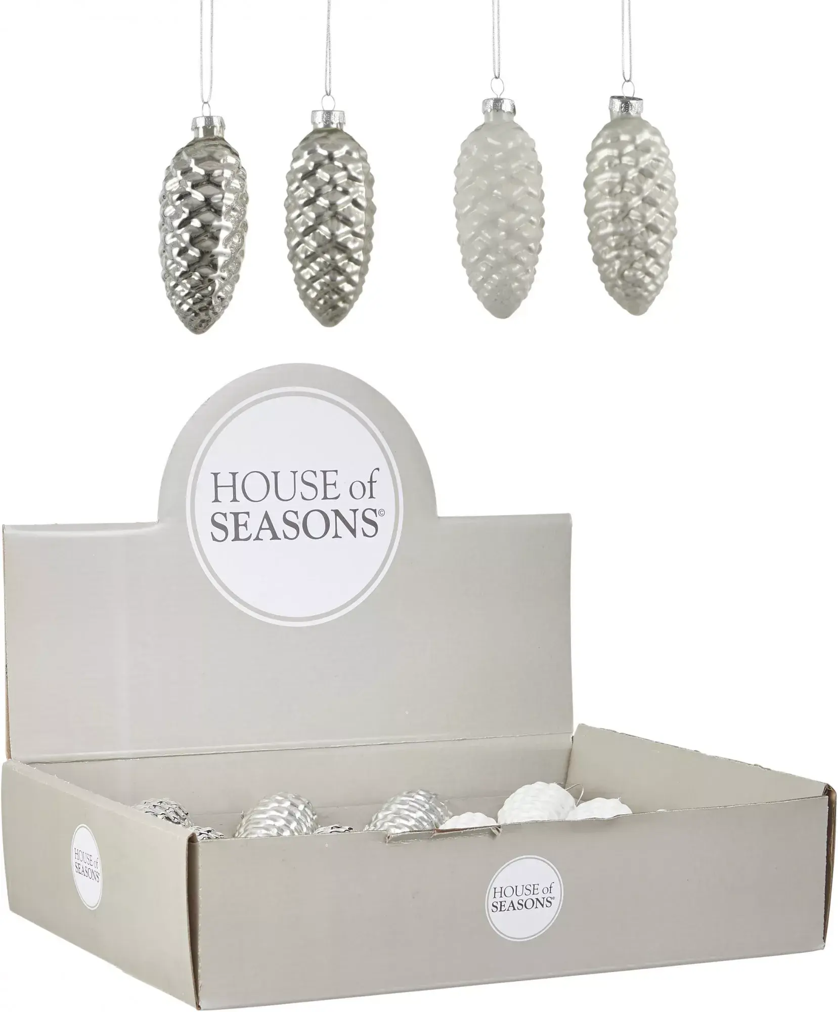 Стеклянные елочные игрушки в виде шишек белого и серебряного цвета – великолепное морозное сочетание для лесной гостьи. Словно льдинки, шишки среди яркой зеленой хвои придадут образу свежести, сверкая в лучах гирлянд, и создадут волшебное настроение, даря настоящую новогоднюю атмосферу. Каждое украшение снабжено специальной петелькой, с помощью которой его можно повесить на елку или в любом понравившемся месте. Такие шишки будут прекрасно гармонировать с набором стеклянных шаров «Снежное утро» (арт.149306) или «Роскошный» (арт 83008/1). Такое сочетание станет готовым решением для украшения Вашей лесной гостьи.