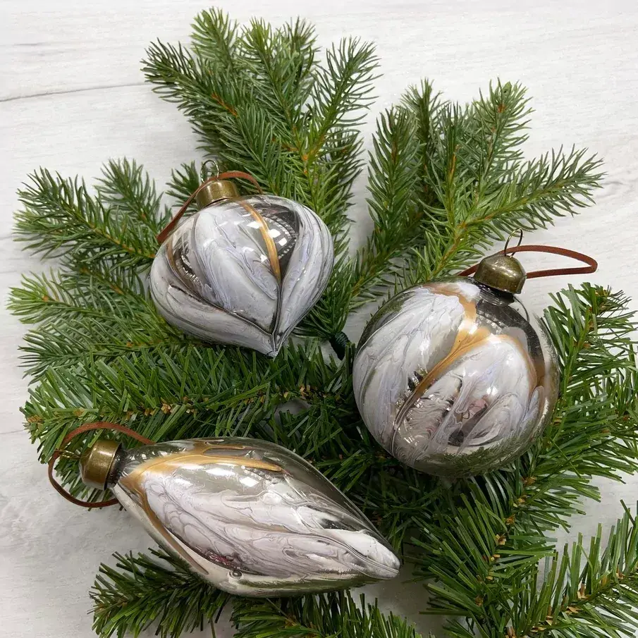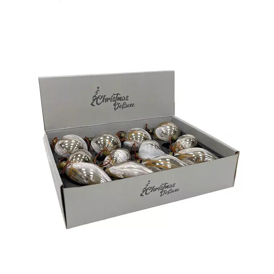 Набор стеклянных украшений Акварель 80 мм., 12 шт., бежевый с золотом, Christmas DeLuxe (87206) – купить за 2 800 ₽ | Мир Ёлок — ваш лучший выбор для создания волшебной атмосферы на Новый год!