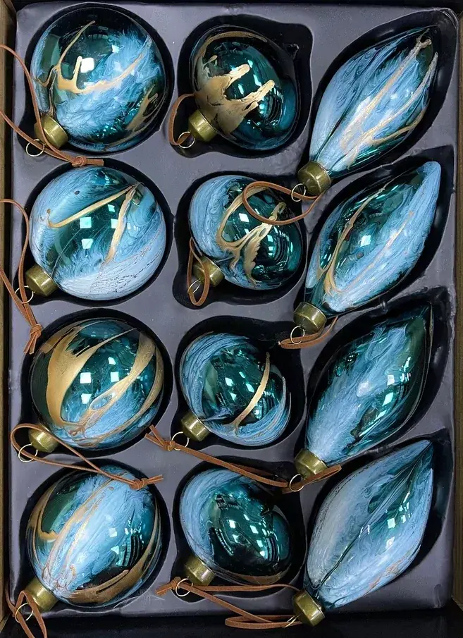 Изысканный цвет, разнообразие форм, благородный блеск и великолепие – именно так выглядит набор стеклянных украшений «Акварель» от известного бренда Christmas De Luxe. В комплекте на только традиционные круглые шары, но и елочные украшения в виде капли и луковки. Процесс украшения елки доставит вам массу удовольствия, а результат и вовсе обеспечит неописуемый восторг!