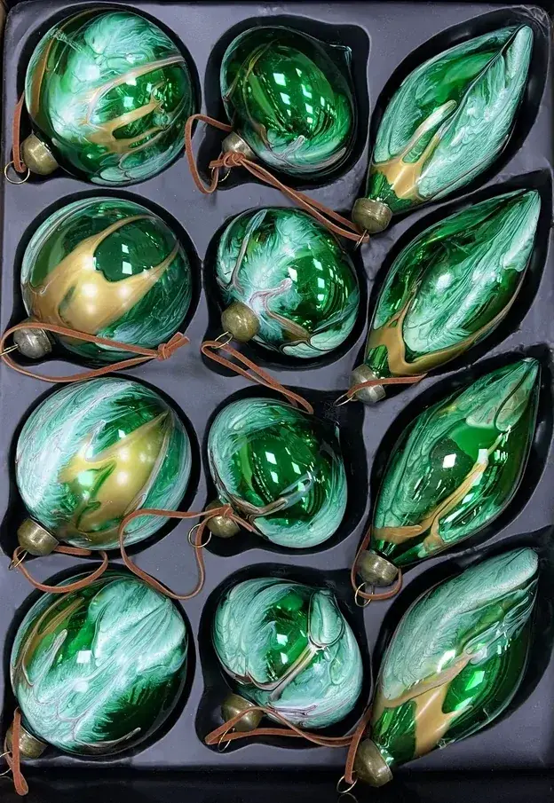 Изысканный цвет, разнообразие форм, благородный блеск и великолепие – именно так выглядит набор стеклянных украшений «Акварель» от известного бренда Christmas De Luxe. В комплекте на только традиционные круглые шары, но и елочные украшения в виде капли и луковки. Процесс украшения елки доставит вам массу удовольствия, а результат и вовсе обеспечит неописуемый восторг!