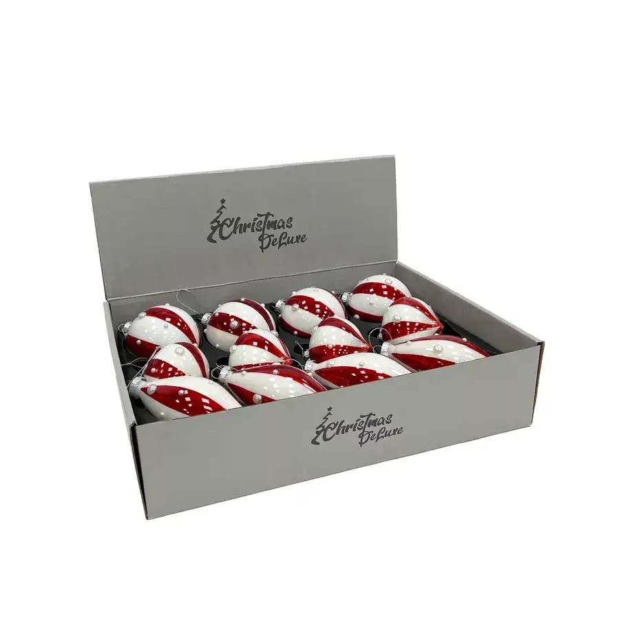 Контраст кипельно-белого и сочного красного – сочетание беспроигрышное. Белый цвет рядом с ярким смотрится очень трогательно, и оттого особенно прекрасен. Набор стеклянных украшений «Белуччи» от Christmas De Luxe найдет поклонников среди тех, кто предпочитает броский, но при этом лаконичный дизайн. К слову, цветовое решение, в котором выполнен набор – одно из трендовых.