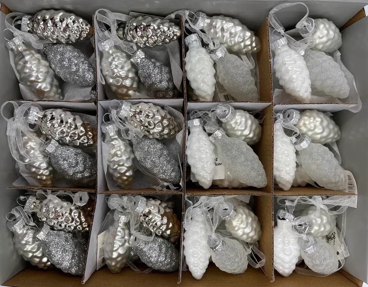 Набор небольших шишек выполнен в самых любимых покупателями цветах, которые смотрятся актуально в интерьере любой стилистики. Благородные оттенки дают максимальное сияние и свечение, отчего елка сразу приобретает особо нарядный и веселый вид. Стеклянные шишечки издают легкий, как будто морозный перезвон – это настоящие звуки зимы, которые добавляют вашей елке лесного колорита.