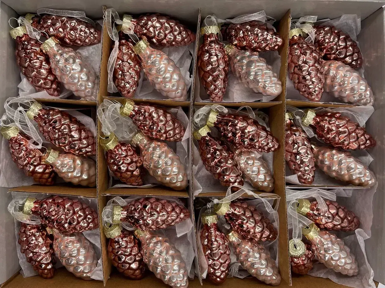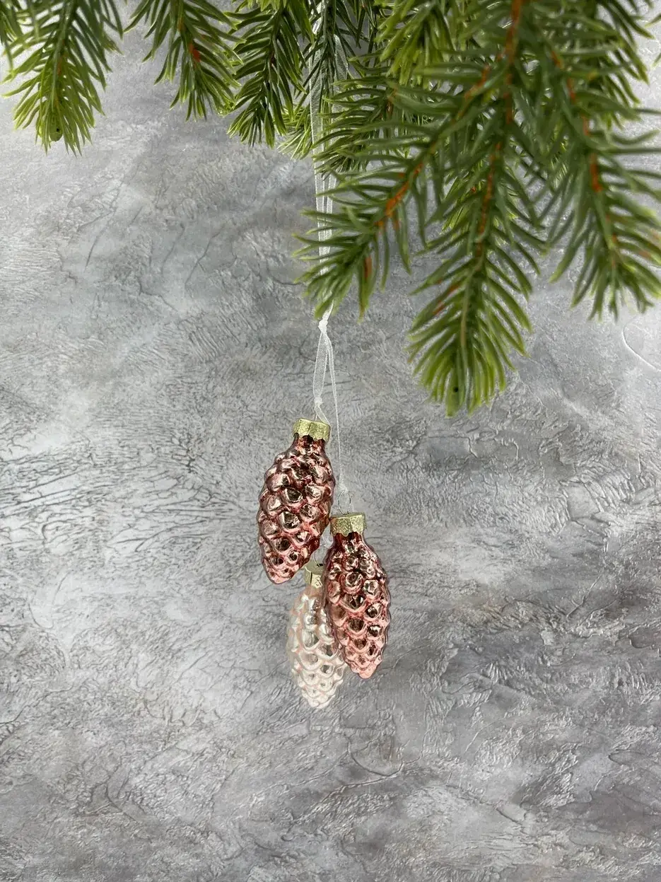 Набор небольших шишек выполнен в самых любимых покупателями цветах, которые смотрятся актуально в интерьере любой стилистики. Благородные оттенки дают максимальное сияние и свечение, отчего елка сразу приобретает особо нарядный и веселый вид. Стеклянные шишечки издают легкий, как будто морозный перезвон – это настоящие звуки зимы, которые добавляют вашей елке лесного колорита.