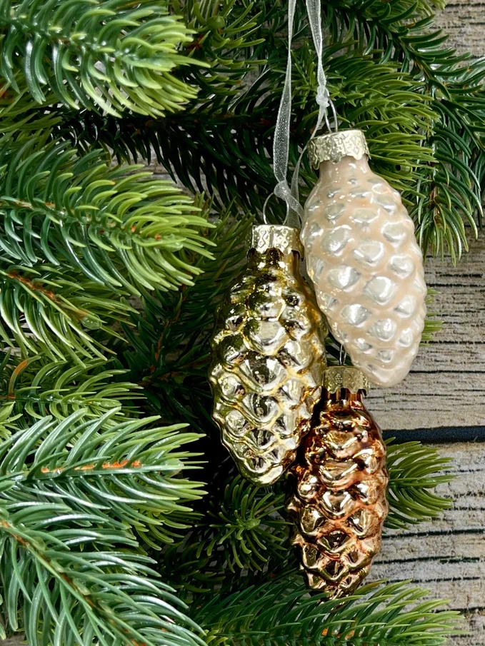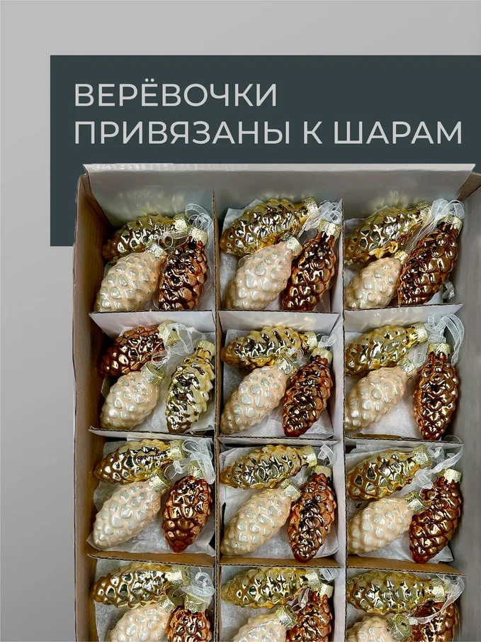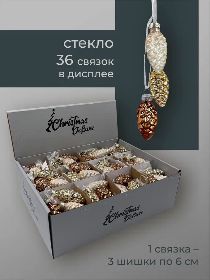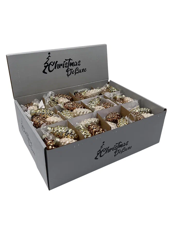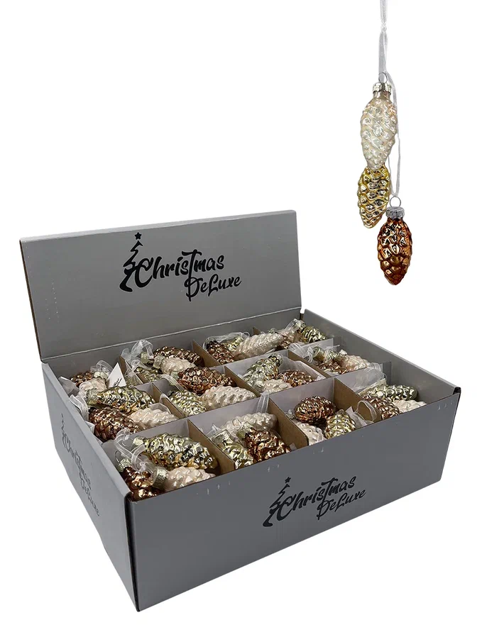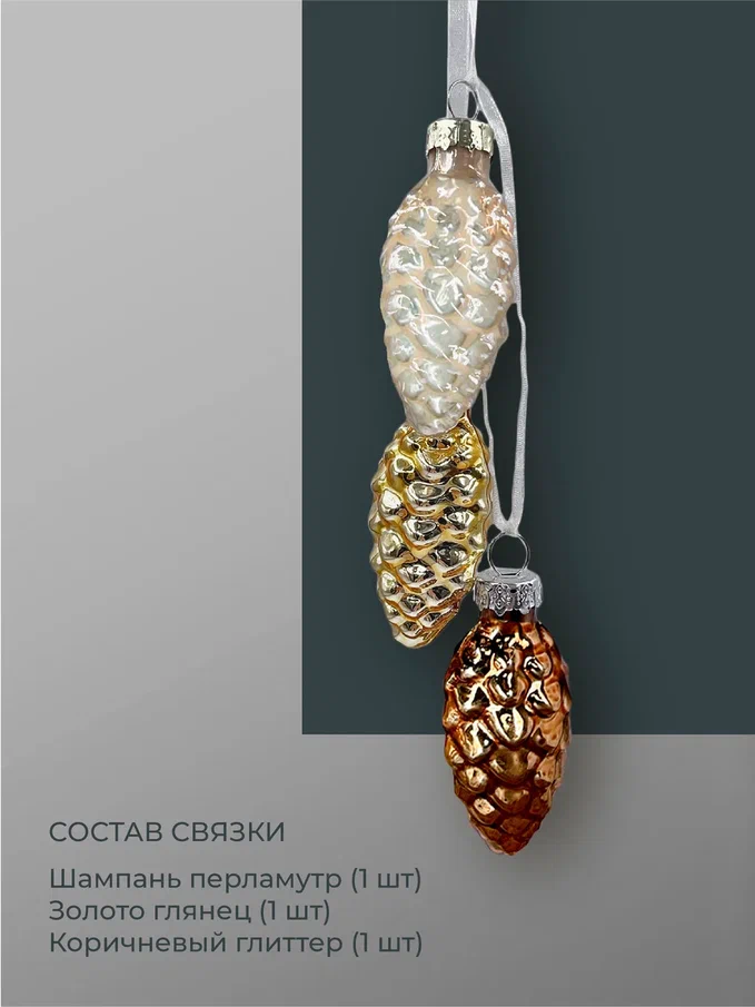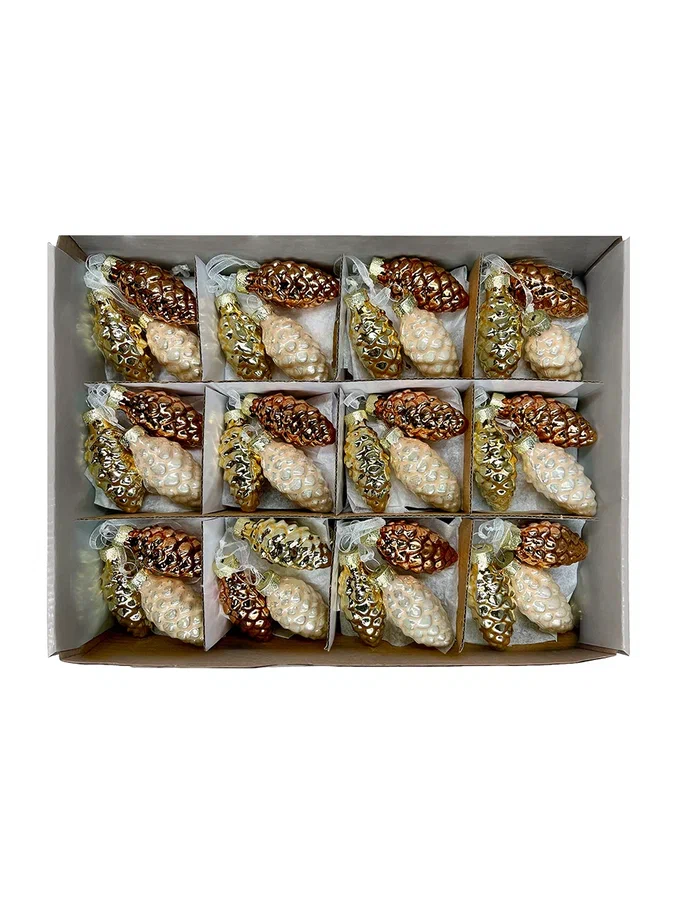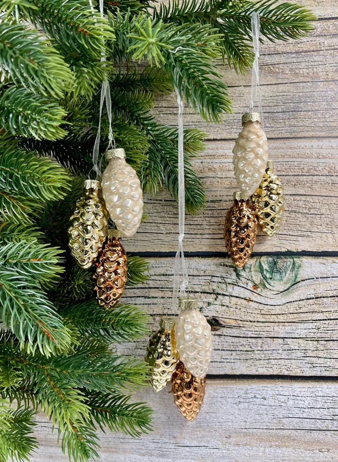 Набор небольших шишек выполнен в самых любимых покупателями цветах, которые смотрятся актуально в интерьере любой стилистики. Благородные оттенки дают максимальное сияние и свечение, отчего елка сразу приобретает особо нарядный и веселый вид. Стеклянные шишечки издают легкий, как будто морозный перезвон – это настоящие звуки зимы, которые добавляют вашей елке лесного колорит