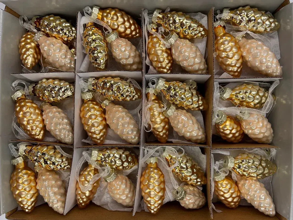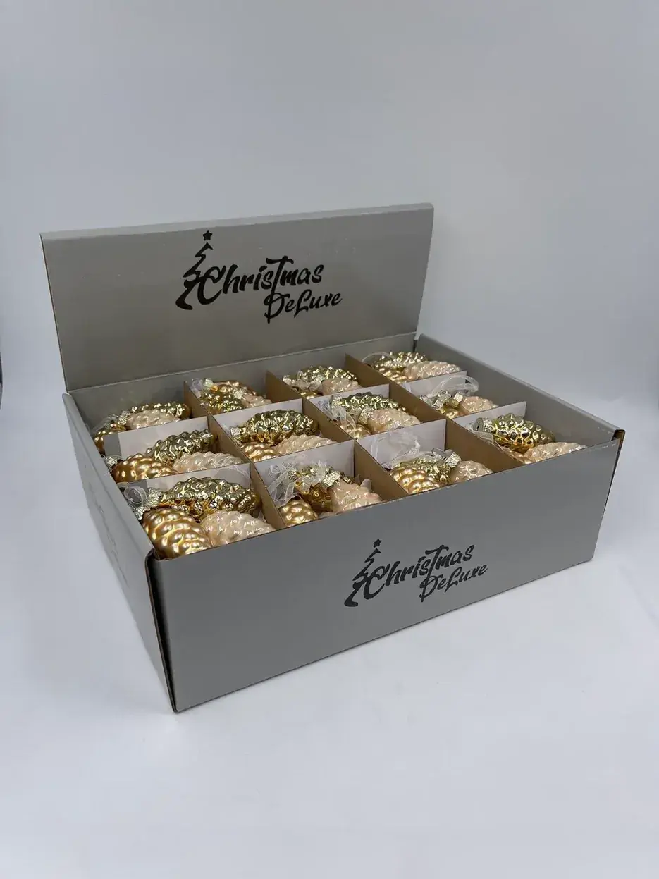 Набор небольших шишек выполнен в самых любимых покупателями цветах, которые смотрятся актуально в интерьере любой стилистики. Благородные оттенки дают максимальное сияние и свечение, отчего елка сразу приобретает особо нарядный и веселый вид. Стеклянные шишечки издают легкий, как будто морозный перезвон – это настоящие звуки зимы, которые добавляют вашей елке лесного колорита.