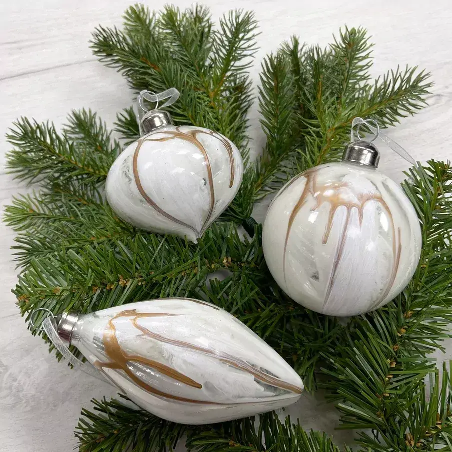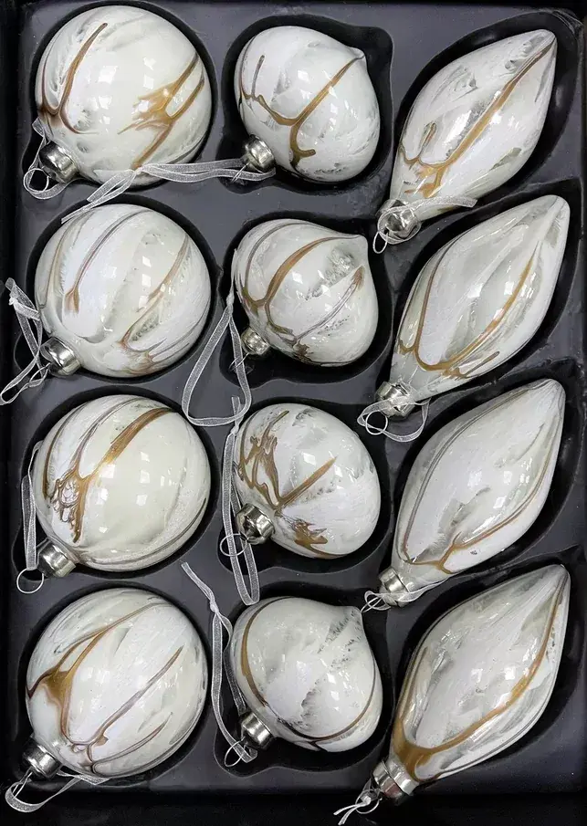 Изысканный цвет, разнообразие форм, благородный блеск и великолепие – именно так выглядит набор стеклянных украшений «Акварель» от известного бренда Christmas De Luxe. В комплекте на только традиционные круглые шары, но и елочные украшения в виде капли и луковки. Процесс украшения елки доставит вам массу удовольствия, а результат и вовсе обеспечит неописуемый восторг!
