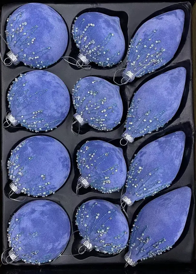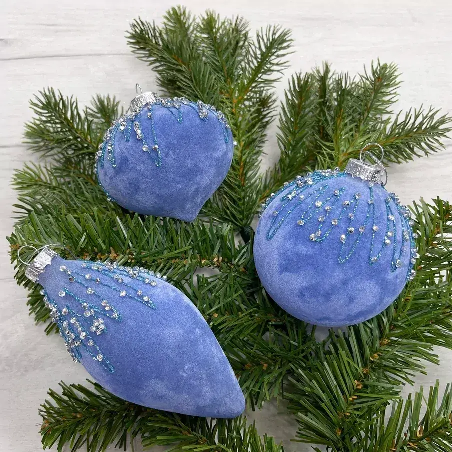 Набор стеклянных украшений «Шпинель» – ода красоте и роскоши. Бархат глубокого синего цвета с отделкой из страз напоминает ночное звёздное небо, и это поистине захватывающее, восхитительное зрелище. В такую ночь грех не загадать желание. А украшения из набора «Шпинель» от Christmas De Luxe станут вашим талисманом, благодаря которому все мечты станут реальностью.