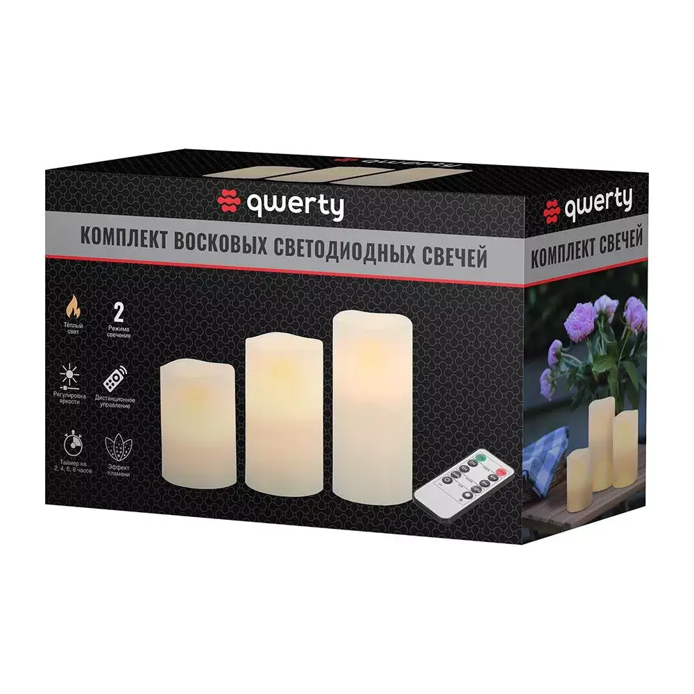 Благодаря встроенному ИК-датчику, совместимо с системой умный дом. Набор светодиодных восковых свечей, с имитацией живого пламени. Диммер, таймер на 2, 4, 6, 8 часов. Постоянное свечение, мерцание. Работает от пульта ДУ. Батарейки формат ААА. Батарейки в комплект не входят!