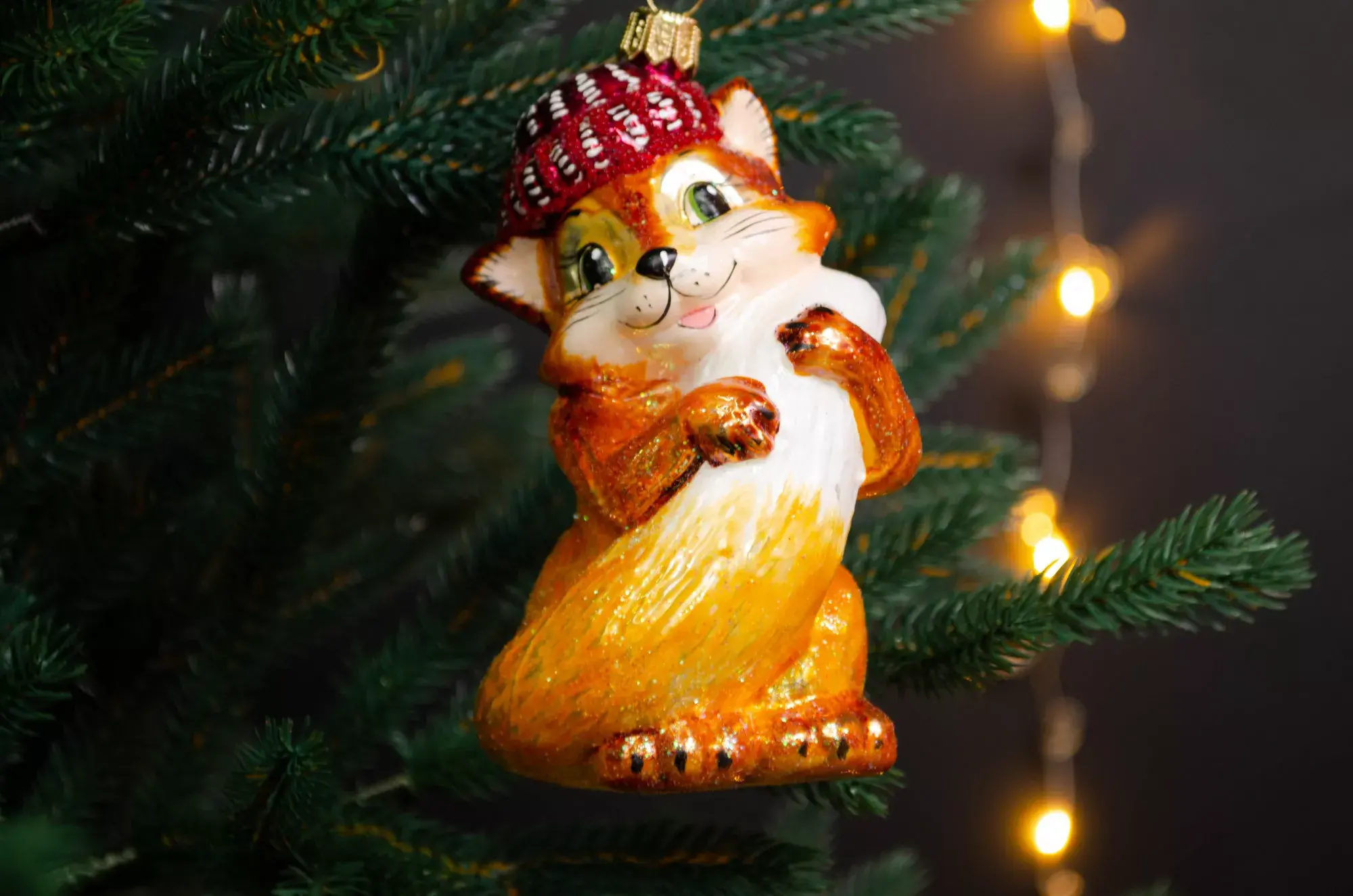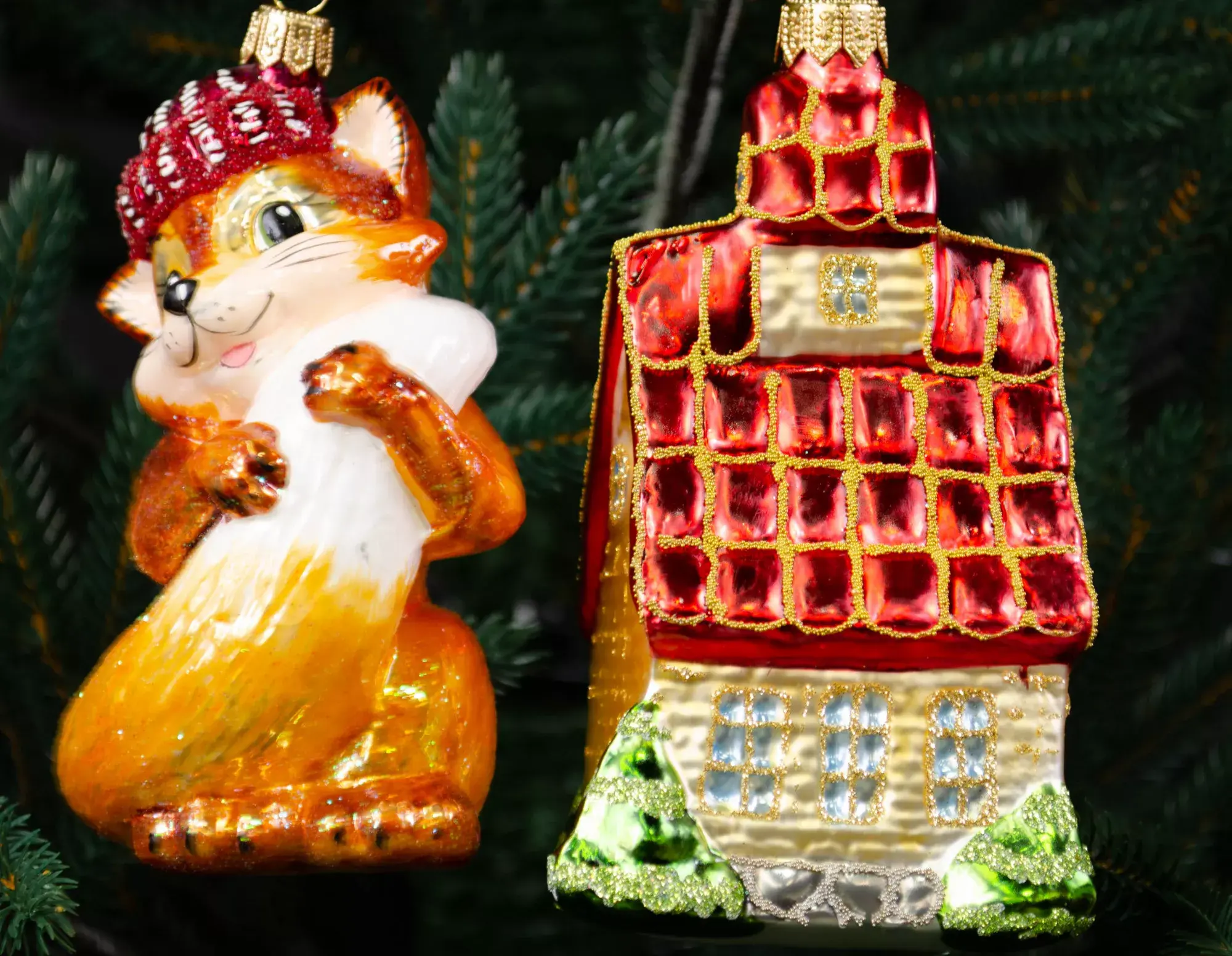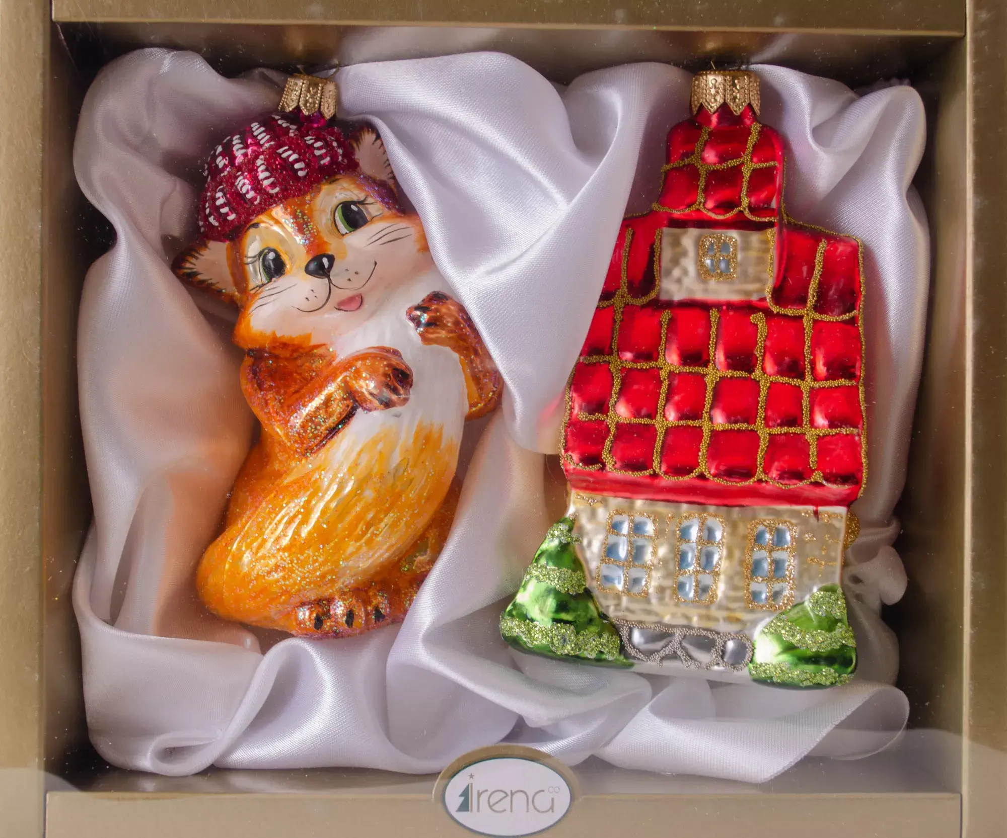 Красивая лисичка в кокетливой шапочке у домика с ярко-красной сверкающей крышей – настоящее произведение искусства от бренда Irena! Лукавая мордочка Лисы Алисы и ее шикарный хвост вызывают восхищенный взгляды и приковывают всеобщее внимание, а красивый домик навевает мысли об уюте и атмосфере добра. Возле домика растут миниатюрные елочки, и эта деталь усиливает праздничное настроение.
