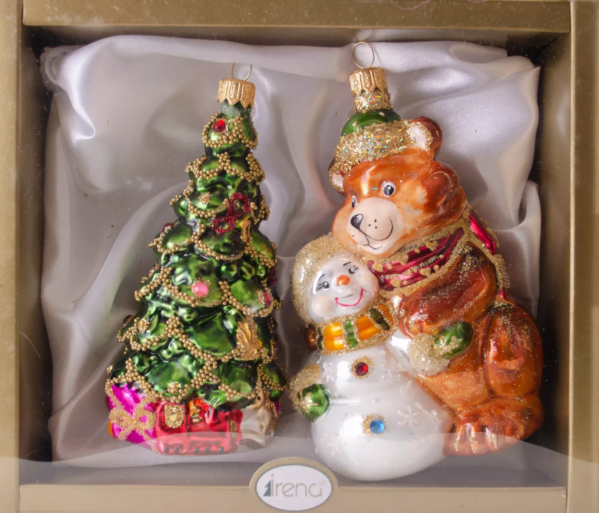 Решили устроить новогодний карнавал? Тогда вам срочно понадобится набор «Новогодний карнавал» от Irena! Красивый и добродушный Михайло Потапыч в нарядной зеленой шапочке, отделанной золотым декором, и сверкающий снеговик в шарфике станут для вас желанными гостями. Еще одна фигурка – роскошно наряженная елка сочного зеленого цвета. Пусть с этими елочными украшениями ваш праздник будет веселым и красивым!