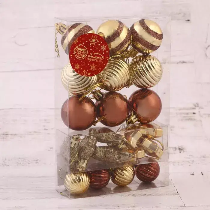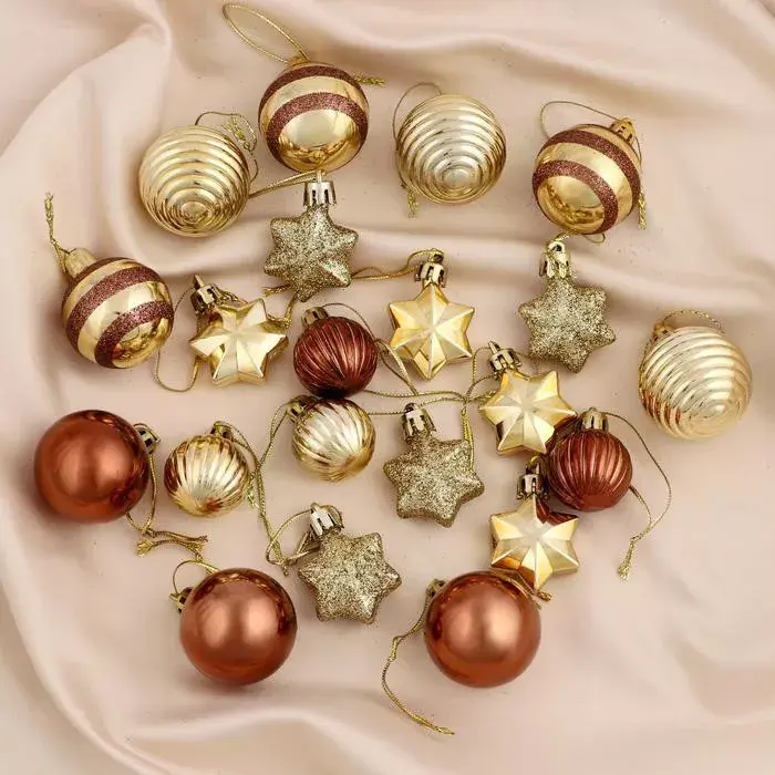 Глядя на набор ёлочных украшений «Серпантин кофейный», невозможно не замереть от восхищения. От шаров королевского золотого и глубокого кофейного цвета веет благородством. Шарики в полоску не оставят равнодушными любителей оригинальных решений. И, наконец, золотые и бежевые звезды, с которыми ваша елка будет настоящей красавицей!