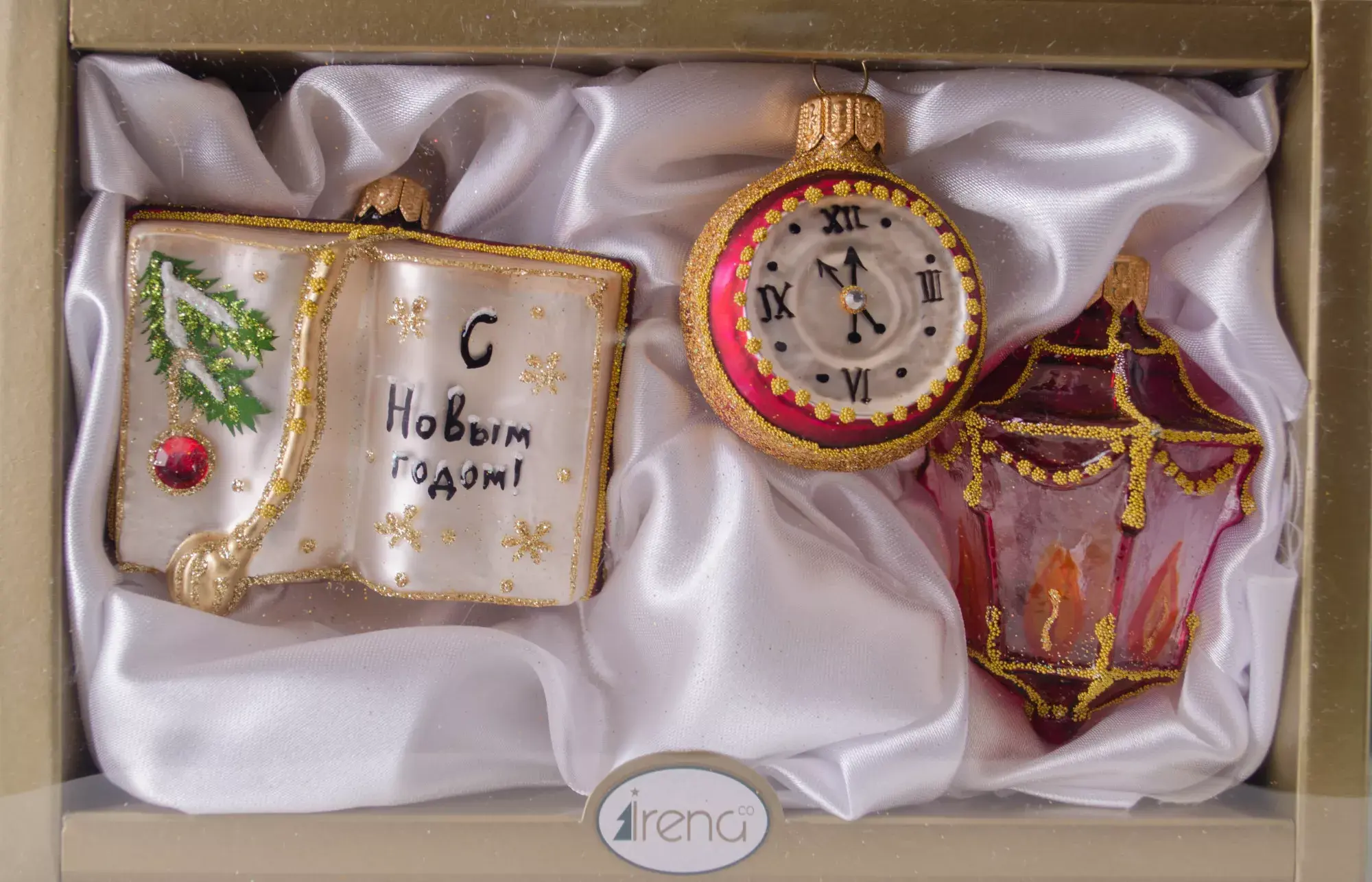 Этот милый набор «Фонарь, часы и книга» выдержан в теплых оттенках. В нем особенно эффектно выделяется белоснежный циферблат часов. Нарядный фонарь и книжка с закладкой навевают мысли о зимнем вечере, когда за окном лютует мороз, а вам тепло и уютно. Золотистая отделка элементов придает им праздничный вид. Фирма Irena знает, как сделать ваш праздник душевным и радостным!