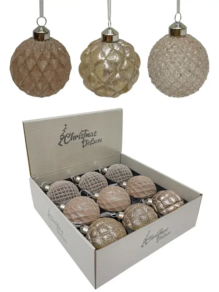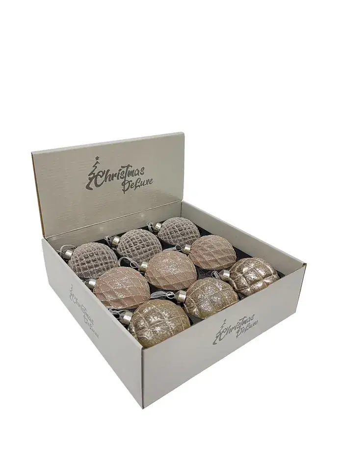 В наборе представлены шары в разнообразные светлых оттенках, от жемчужного до молочного. Казалось бы, классические светлые шары, а сколько в них изысканности и эстетичности. К таким шарам можно добавить шишек, красных или синих шаров, прозрачных сосулек, отчего их мягкий цвет заиграет удивительно, а елка превратится в утонченную зеленую красотку!