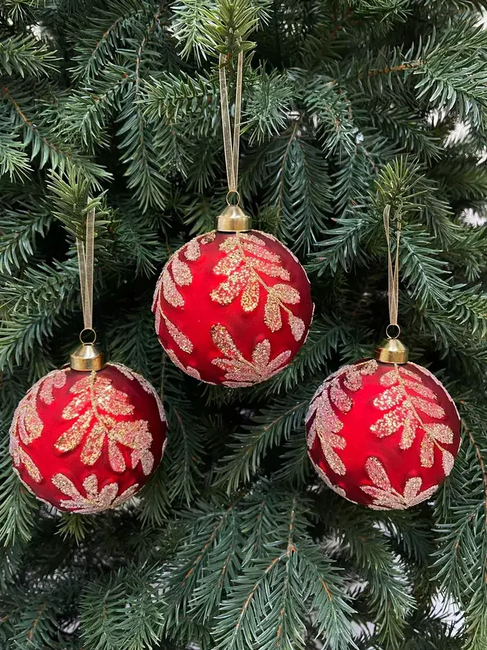Каждый красный шар набора украшен снежным узором, который рисует мороз на заиндевевшем окне. Контраст насыщенного красного и искрящегося рисунка притягивает взор. Такие игрушки всегда популярны и пользуются устойчивым спросом, вне зависимости от модных тенденций. Вот и комплект «Изысканный» представляет собой ту самую изысканную красоту, которая с годами становится только лучше!