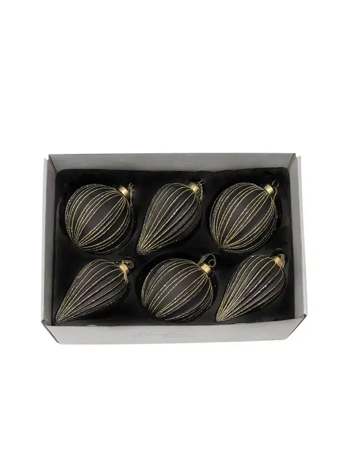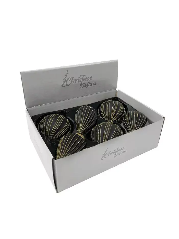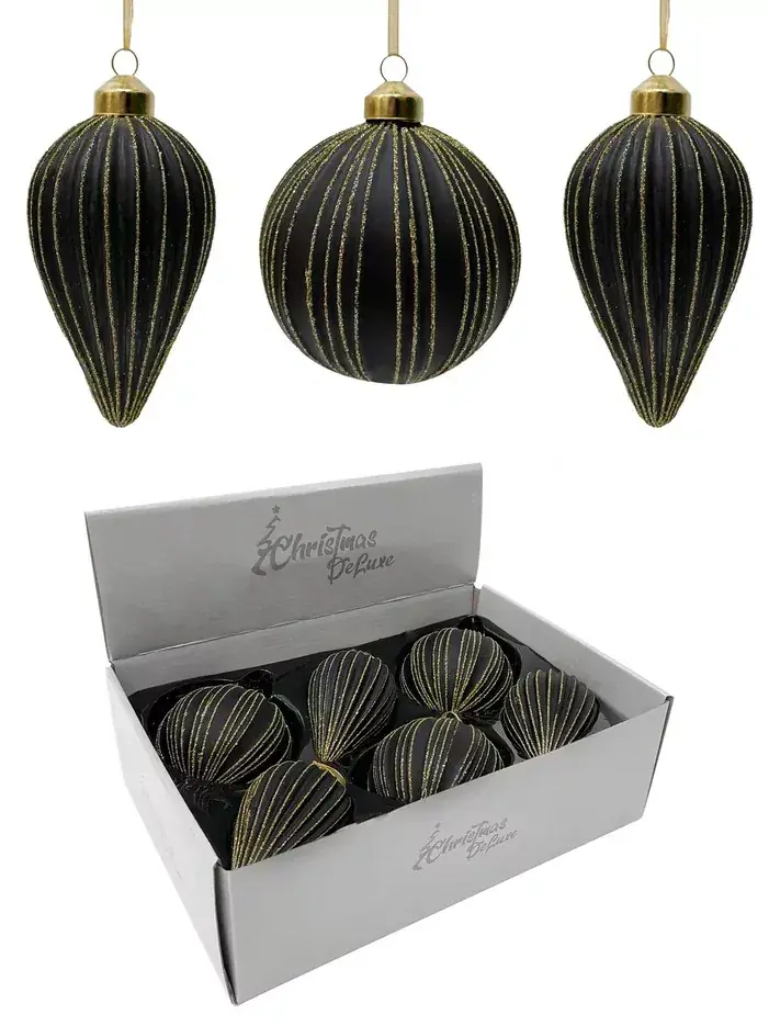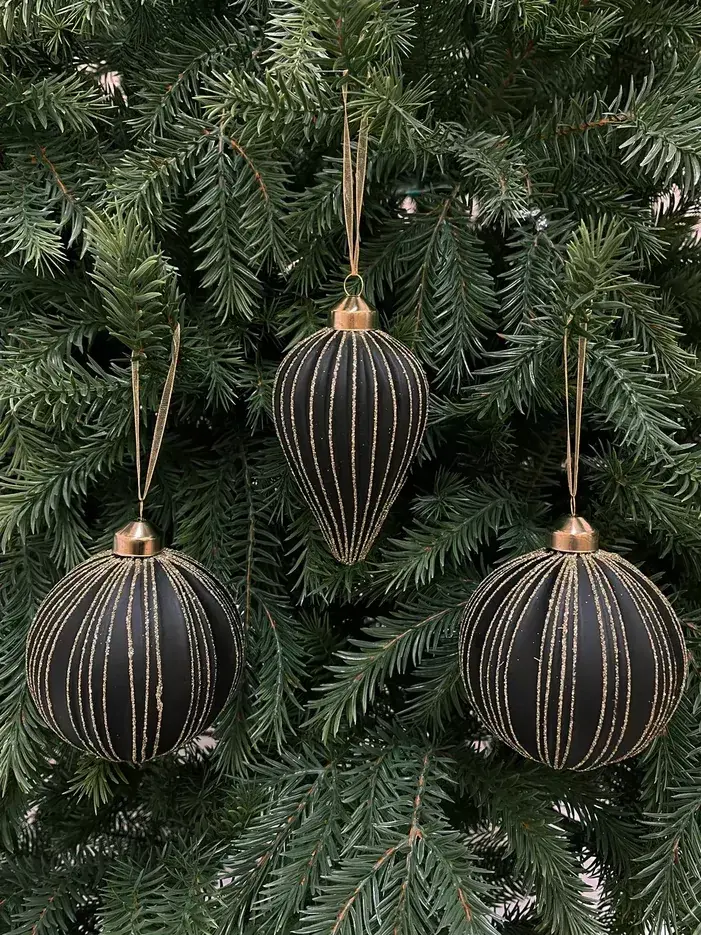 Набор состоит из шаров и каплевидных игрушек с акцентированными светлыми гранями. Такие игрушки универсальны и уместны в любом декоре. Это может быть классическая красно-зеленая елка, модное дерево в винтажном или минималистичном стиле. Светлые грани на контрасте сияют сильнее и ярче, создавая неповторимую атмосферу волшебства.