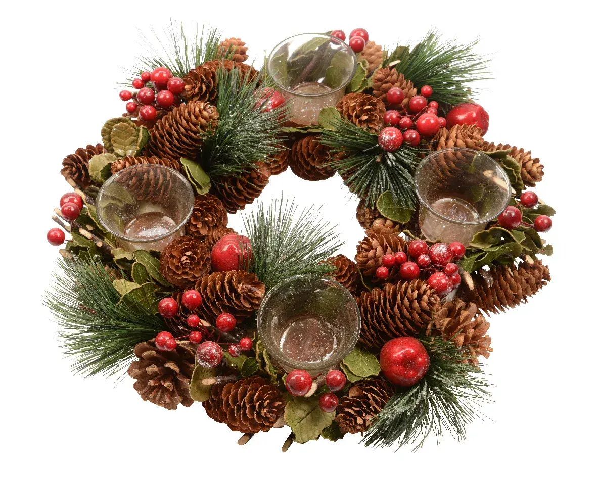 «Сладкие зимние ягоды» … Это словосочетание навевает мысли о замороженных зимних ягодах, таких сладких, сочных и красивых. Нереально красивые зимние ягоды, которыми украшен новогодний подсвечник Kaemingk, выполненный в виде венка из роскошных шишек, сосновых веток и дубовых листьев, выглядят очень реалистично. Ни у кого не возникнет сомнений: они и вправду заморожены! А сосновые ветки, будто припорошенные снегом, довершают это впечатление. Подсвечник рассчитан на 4 свечи, в свете которых эта элегантная зимняя композиция будет выглядеть по-настоящему празднично и немного таинственно. Вы в предвкушении самой волшебной ночи года? Не забудьте обзавестись роскошным аксессуаром «Сладкие зимние ягоды» и привнести в свой дом еще больше романтики!
