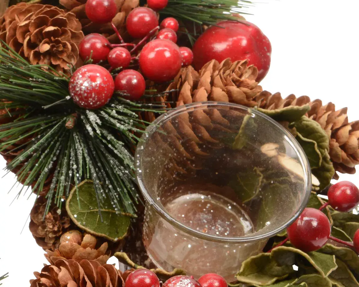«Сладкие зимние ягоды» … Это словосочетание навевает мысли о замороженных зимних ягодах, таких сладких, сочных и красивых. Нереально красивые зимние ягоды, которыми украшен новогодний подсвечник Kaemingk, выполненный в виде венка из роскошных шишек, сосновых веток и дубовых листьев, выглядят очень реалистично. Ни у кого не возникнет сомнений: они и вправду заморожены! А сосновые ветки, будто припорошенные снегом, довершают это впечатление. Подсвечник рассчитан на 4 свечи, в свете которых эта элегантная зимняя композиция будет выглядеть по-настоящему празднично и немного таинственно. Вы в предвкушении самой волшебной ночи года? Не забудьте обзавестись роскошным аксессуаром «Сладкие зимние ягоды» и привнести в свой дом еще больше романтики!