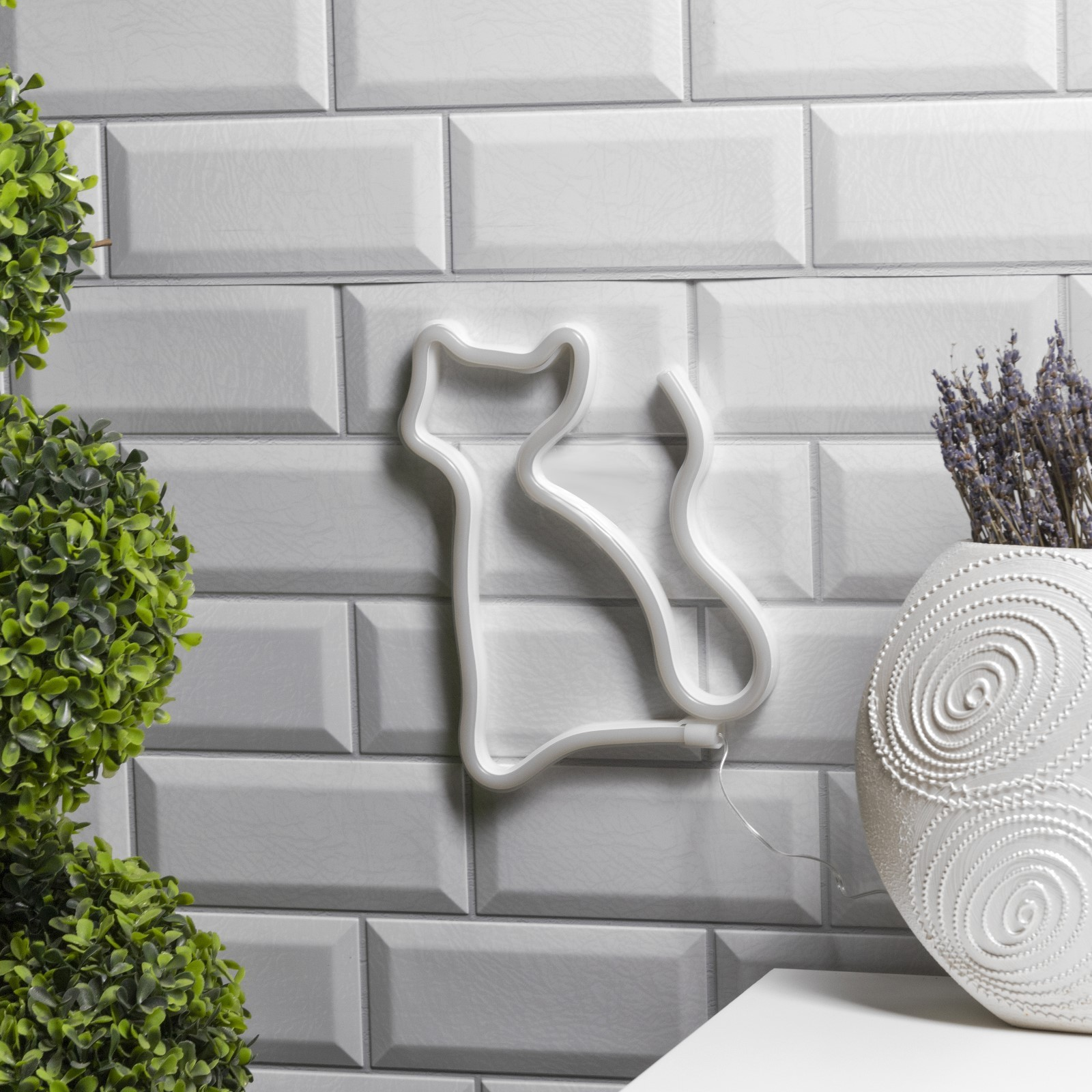 Симпатичная и невероятно грациозная кошечка золотисто-коричневого цвета пришла в ваш дом, чтобы сделать новогоднюю ночь доброй, красивой и приятной. А еще кошка в доме – это к счастью и финансовому благополучию! Нарядная вывеска излучает теплый цвет, радующий глаз и наполняющий дом радостным сиянием. Используйте этот декор для украшения своего жилья и наслаждайтесь поистине сказочной атмосферой. Вывеска размером 16х23 см работает от батареек.