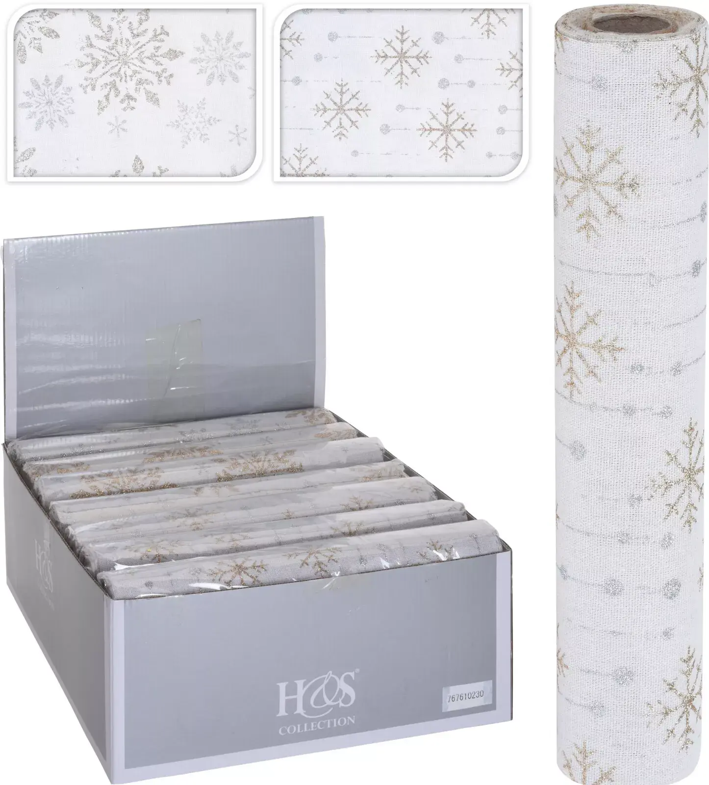 Россыпи резных снежинок на белоснежном фоне – это просто нереально красивое зрелище! Фирма Koopman с удовольствием дарит его вам. Ваш стол будет настоящим произведением искусства, а гости придут в неописуемый восторг. Дорожка для стола «Золотое кружево» размером 28 на 270 см, изготовленная из полиэстера – одна из самых выигрышных новогодних идей. Этот роскошный элемент декора ассоциируется с зимой, снегом и, конечно же, с главным праздником года, когда сбываются все мечты.