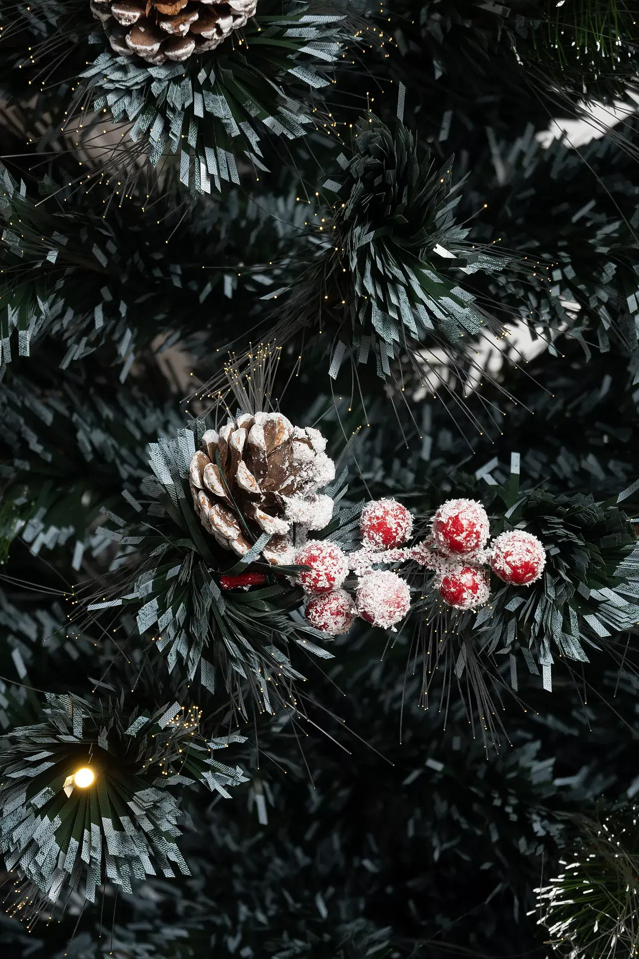 Каждая веточка светодиодной оптоволоконной елки Альпийская 120 см., выглядит невероятно реалистично и переливается словно звездный небосвод. Красивые объемные натуральные шишки и красные ягодки покрытые инеем придают королеве новогодней ночи еще больше живости, а уютные огоньки теплого белого свечения несут настоящую сказочную атмосферу. Согласитесь, даже немного странно, что ёлочка не пахнет хвоей, ведь выглядит она и правда как настоящая. Владельцы домашних животных и молодые родители наверняка зададутся вопросом, насколько она безопасна. Ваши опасения излишни – Альпийская красотка гипоаллергенна и абсолютно безопасна. Дизайн продуман до мельчайших деталей, она не требует дополнительных украшений и полностью укомплектована новогодним убранством.